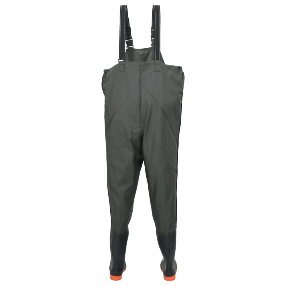 Estas jardineiras com botas são duráveis, flexíveis e adequadas para pesca, caça, agricultura e muito mais. Resistente à água: este tecido de poliéster com revestimento especial é agradavelmente acolhedor por dentro e robusto por fora. Graças às suas costuras acolchoadas e seladas e às botas fixas, estas perneiras são resistentes à água. Proteção: estas jardineiras oferecem proteção contra água, lama e outros elementos, mantendo-o seco e confortável enquanto trabalha ou desfruta de atividades ao ar livre. Ajustáveis e confortáveis: estas perneiras de pesca possuem suspensórios ajustáveis que as tornam fáceis e rápidas de calçar e descalçar. Além disso, as alças garantem um ajuste perfeito e um ótimo conforto de utilização. Botas incorporadas para maior comodidade: com botas incorporadas, estas jardineiras são fáceis de vestir e tirar, poupando-lhe tempo e esforço em comparação com jardineiras e botas separadas. Múltiplas aplicações: estas jardineiras de pesca são excelentes para pescadores e agricultores, passeios casuais na floresta e no campo, para a caça e muito mais.