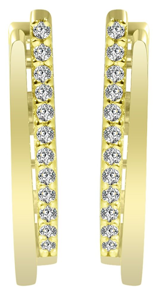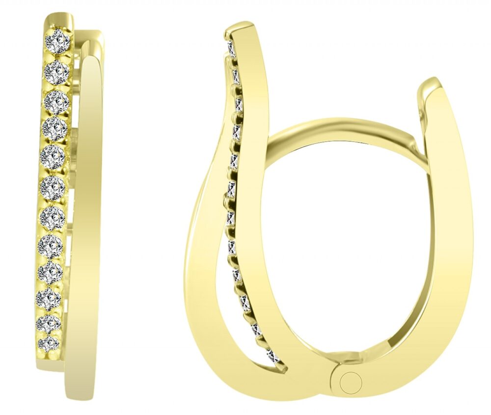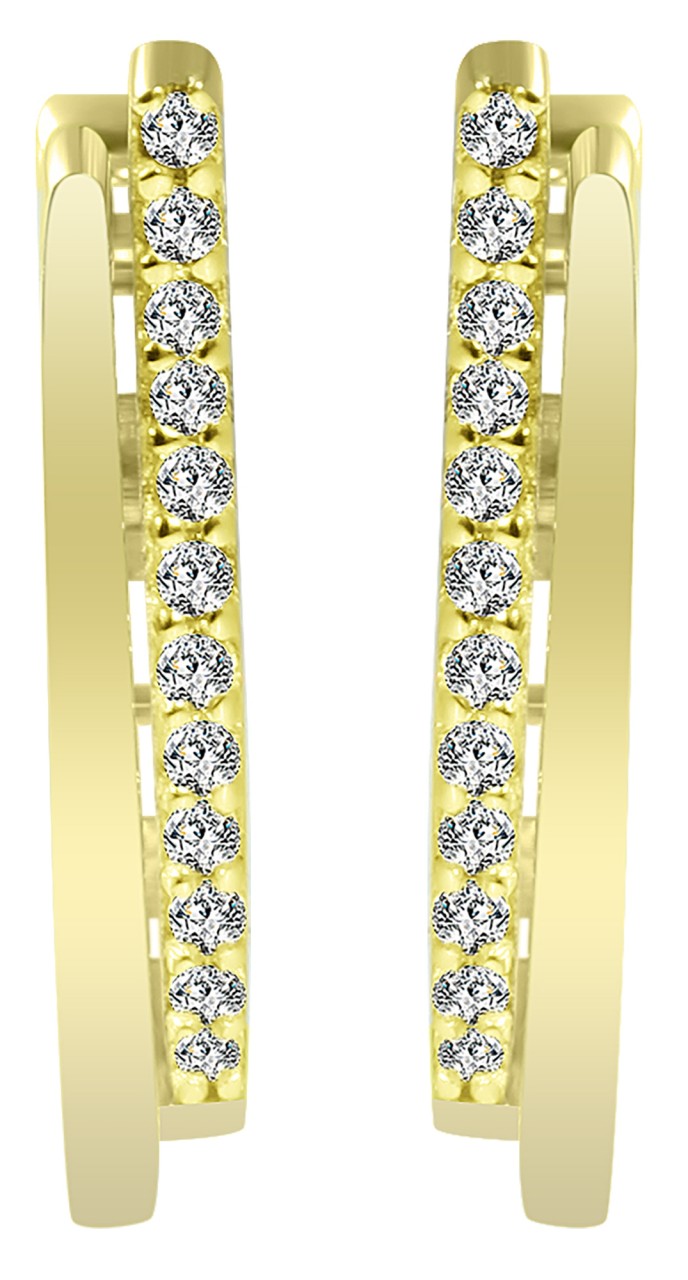 Os brincos de argola dobráveis femininos são feitos de ouro amarelo 585 de alta qualidade e incrustados com pedras brilhantes de zircônia na borda da argola. Eles realçam o visual destes brincos elegantes, criam um contraste atraente e acrescentam um toque elegante. O tamanho resulta de um comprimento de 16 mm, largura de 3 mm e espessura de material de 2 mm. Os brincos de argola podem ser abertos e fechados por meio de um mecanismo dobrável, impossibilitando abri-los sozinho. Os brincos têm um design elegante e atemporal com acabamento superficial polido. Brincos de argola são muito populares. Expressivos e elegantes, estes brincos embelezam quem os usa e marcam habilmente.