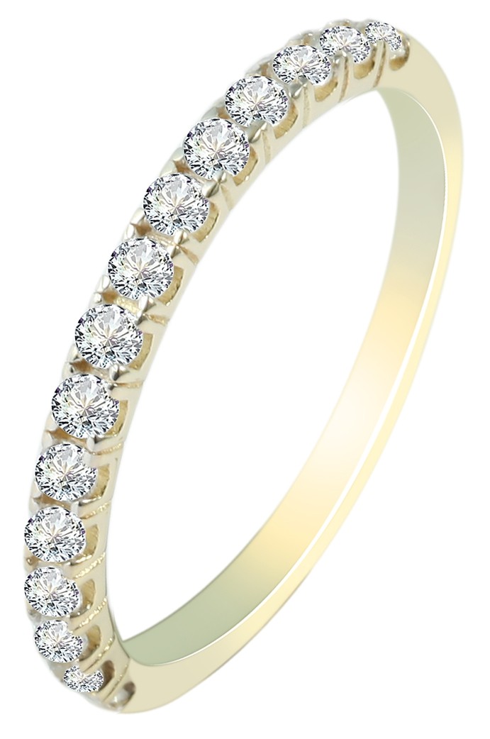 Este anel feminino é fabricado em ouro amarelo 333/- de alta qualidade e tem um design discreto e um acabamento de superfície polido. A banda do anel é adornada com 15 pedras zircónias brilhantes. O rebordo branco cria um contraste elegante e apelativo. O anel está disponível nos tamanhos 50 – 60 e tem uma largura e espessura de 2 mm. O design elegante e intemporal faz com que esta elegante peça de joalharia brilhe com qualquer roupa. Também é ideal para oferecer como presente, pois o material de alta qualidade e o acabamento elaborado fazem deste anel um companheiro eterno.