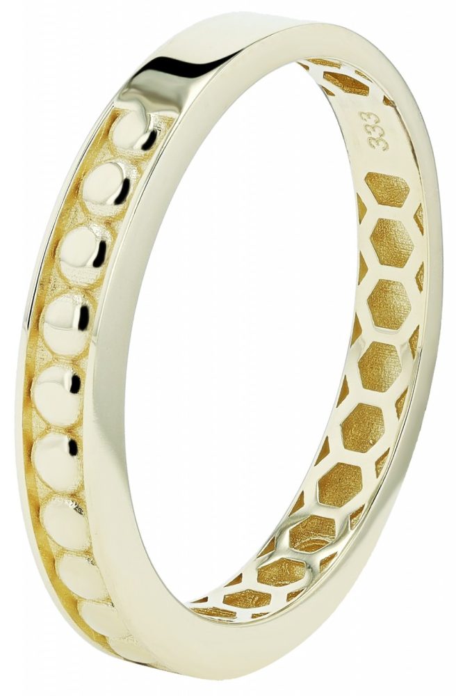 Este anel feminino é fabricado em ouro amarelo 333. O anel polido tem um aspeto especial graças às decorações redondas. Esta joia de dedo elegante e intemporal está disponível nos tamanhos 50 a 60 e, com uma largura de 3 mm, adapta-se perfeitamente a todas as mãos. O anel tem um acabamento de alta qualidade, garantindo uma longa vida útil e chamando a atenção pelo seu brilho duradouro. O design simples mas apelativo faz do anel um acessório versátil que pode ser usado tanto no dia a dia como em ocasiões especiais. Também é ideal para oferecer como presente, pois o material de alta qualidade e o acabamento elaborado fazem deste anel um companheiro eterno.