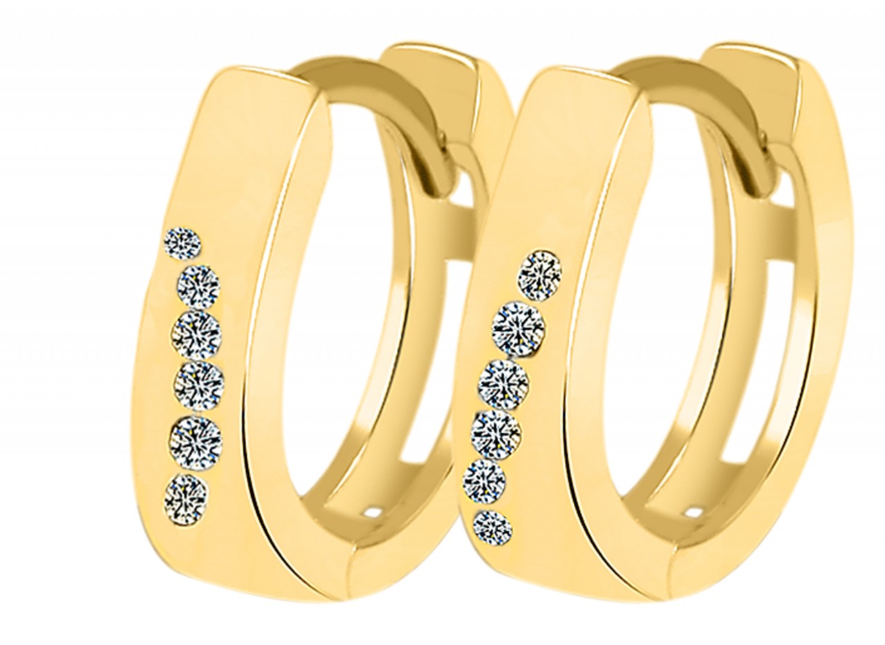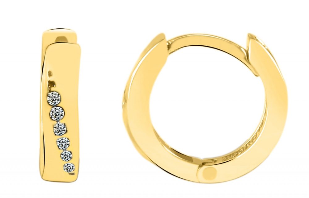 Os brincos de argola com dobradiças femininos são feitos de ouro amarelo 333 de alta qualidade e são cravejados com pedras de zircónio brilhantes. Têm um diâmetro de 9 mm, uma largura de 3 mm e uma espessura de material de 2 mm. As argolas podem ser abertas e fechadas através de um mecanismo articulado, sendo impossível abri-las sozinhas. Os brincos têm um design elegante e intemporal com uma superfície polida. A guarnição branca cria um contraste apelativo e dá um toque elegante ao design. Os brincos de argola são muito populares. Esta bijuteria dá-lhe uma companhia elegante com uma aparência autoconfiante que irá apreciar durante muito tempo.