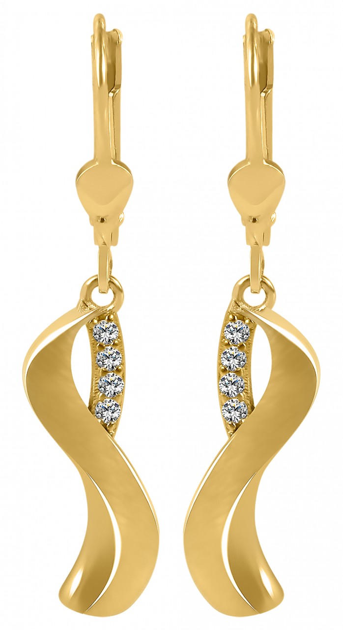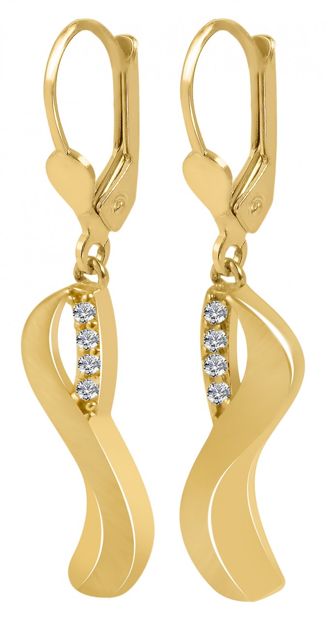 Estes brincos elegantes com um design curvo são feitos de ouro amarelo 333 de alta qualidade e decorados com zircónias brilhantes. Têm um comprimento total de 34 mm, uma largura de 6 mm e uma espessura de material de 2 mm. O design caracteriza-se por um aspeto clássico com um acabamento de superfície polido e mate. A guarnição branca cria um contraste apelativo e dá ao look um toque de luxo. As joias para as orelhas são presas com um prático fecho de gancho, fácil de utilizar e que não se abre sozinho. Os brincos são joias para as orelhas elegantes e intemporais, que balançam elegantemente com cada movimento. São ideais para combinar com qualquer ocasião e revelar-se-ão companheiros duradouros que irá apreciar durante muito tempo.
