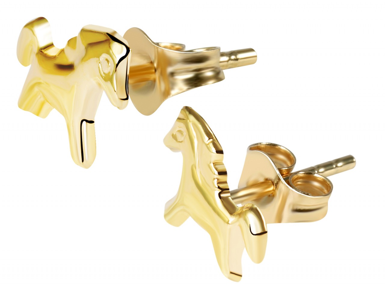 Estes encantadores brincos de cavalo são feitos de ouro amarelo 333 de alta qualidade e são o acessório perfeito para os pequenos amantes de cavalos. O material de alta qualidade garante que estes brincos são robustos e duradouros e que continuam a ter um aspeto novo, mesmo depois de muito uso e aventuras. São fixados no orifício da orelha com um prático parafuso de asa, que evita que se percam acidentalmente durante o uso. Este brinco é da mais alta qualidade e é o presente ideal para os amantes de cavalos.