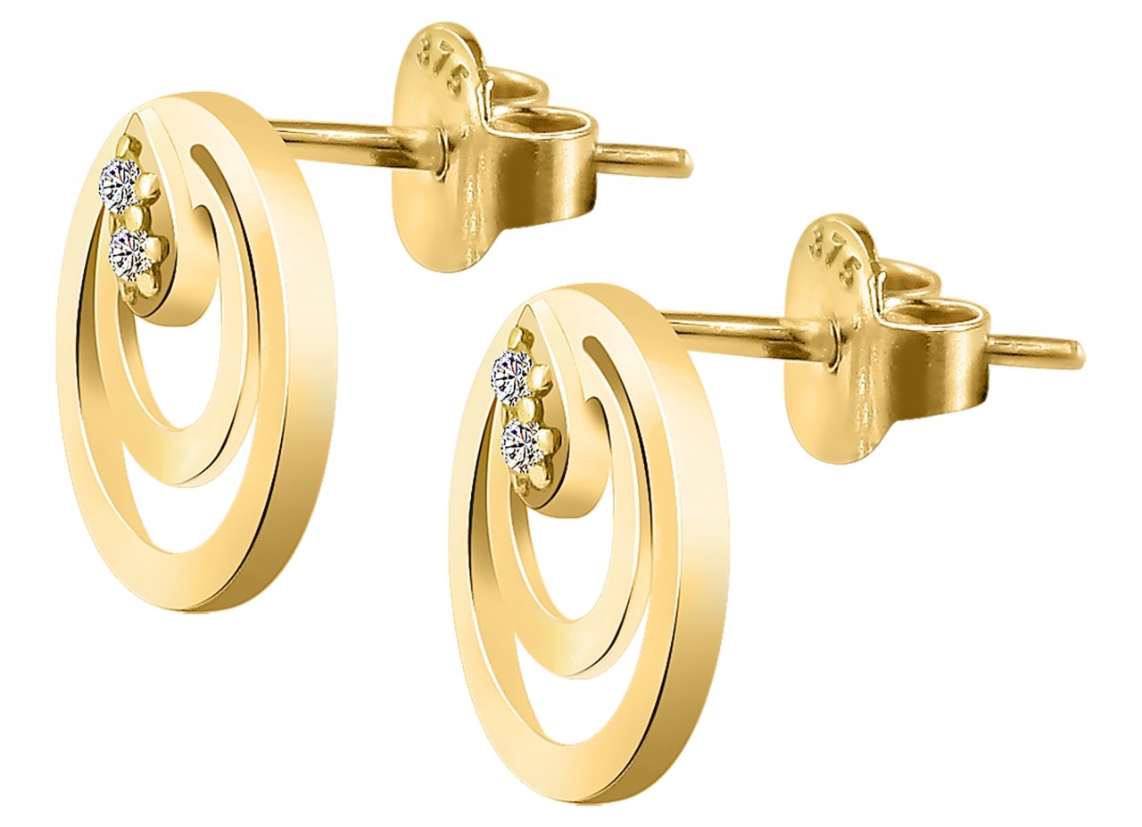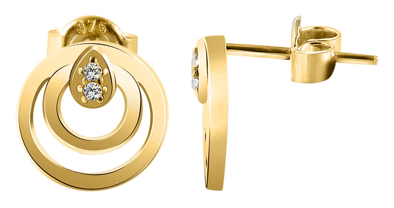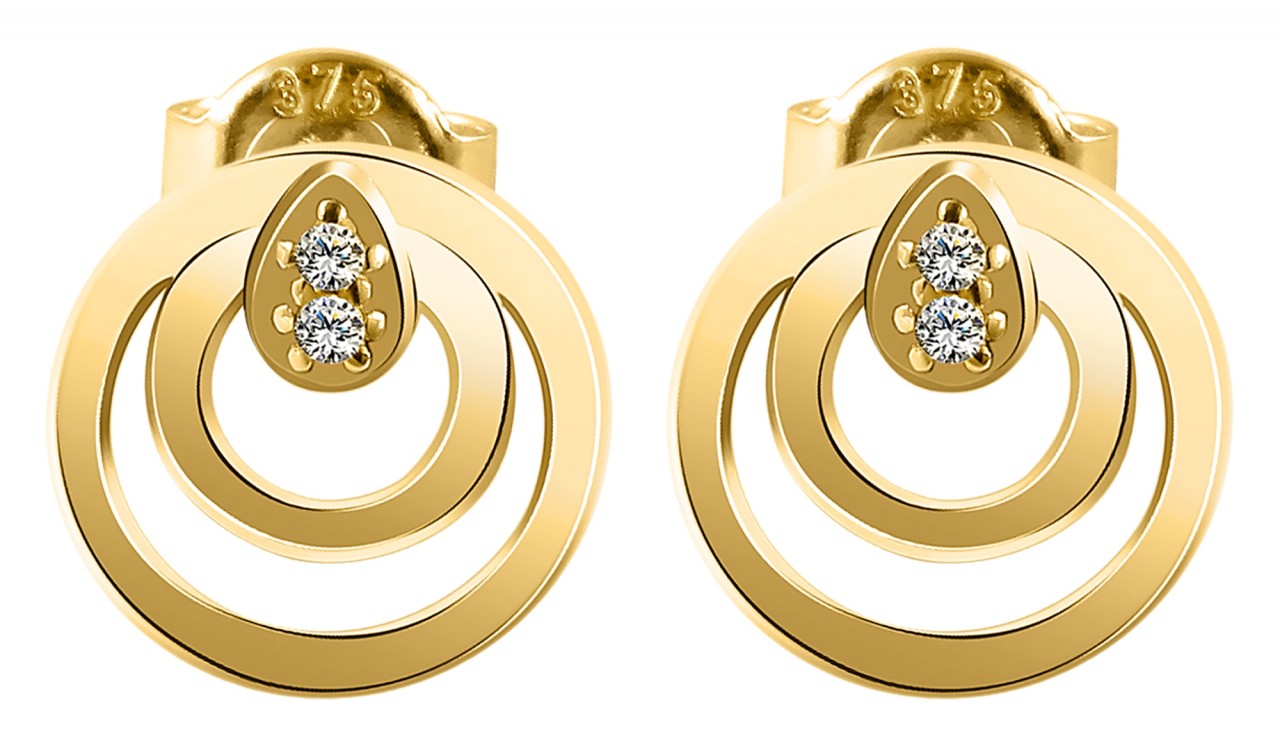 Os brincos femininos de forma redonda estão disponíveis em ouro 333 ou 375 e em ouro amarelo e ouro branco. São também adornados com duas pedras zircónias brilhantes. O engaste branco cria um contraste apelativo. Os brincos em ouro são fixados com um prático parafuso de asa, também em ouro verdadeiro, fácil de utilizar e que garante uma fixação segura no orifício da orelha. O design sofisticado destas joias para as orelhas é impressionante, com duas argolas grandes diferentes ligadas entre si para criar um aspeto geral harmonioso. Em suma, estes brincos são acessórios intemporais que podem ser combinados para qualquer ocasião. As dimensões resultam de um diâmetro de 10 mm e de uma espessura de material de 1 mm.