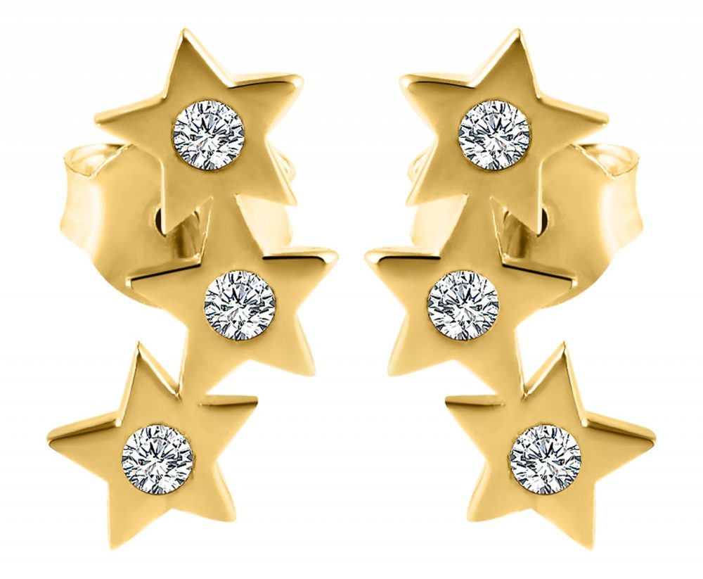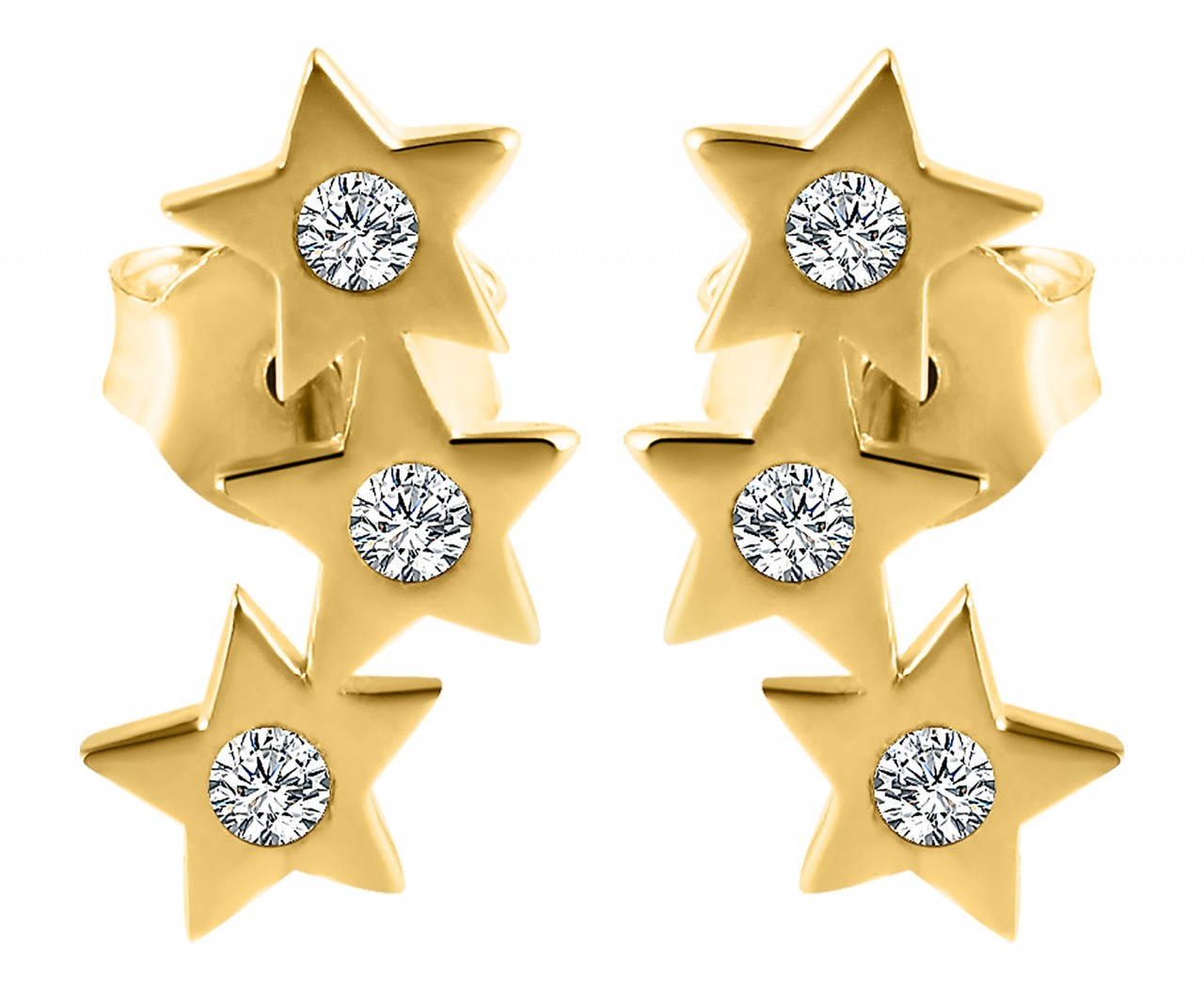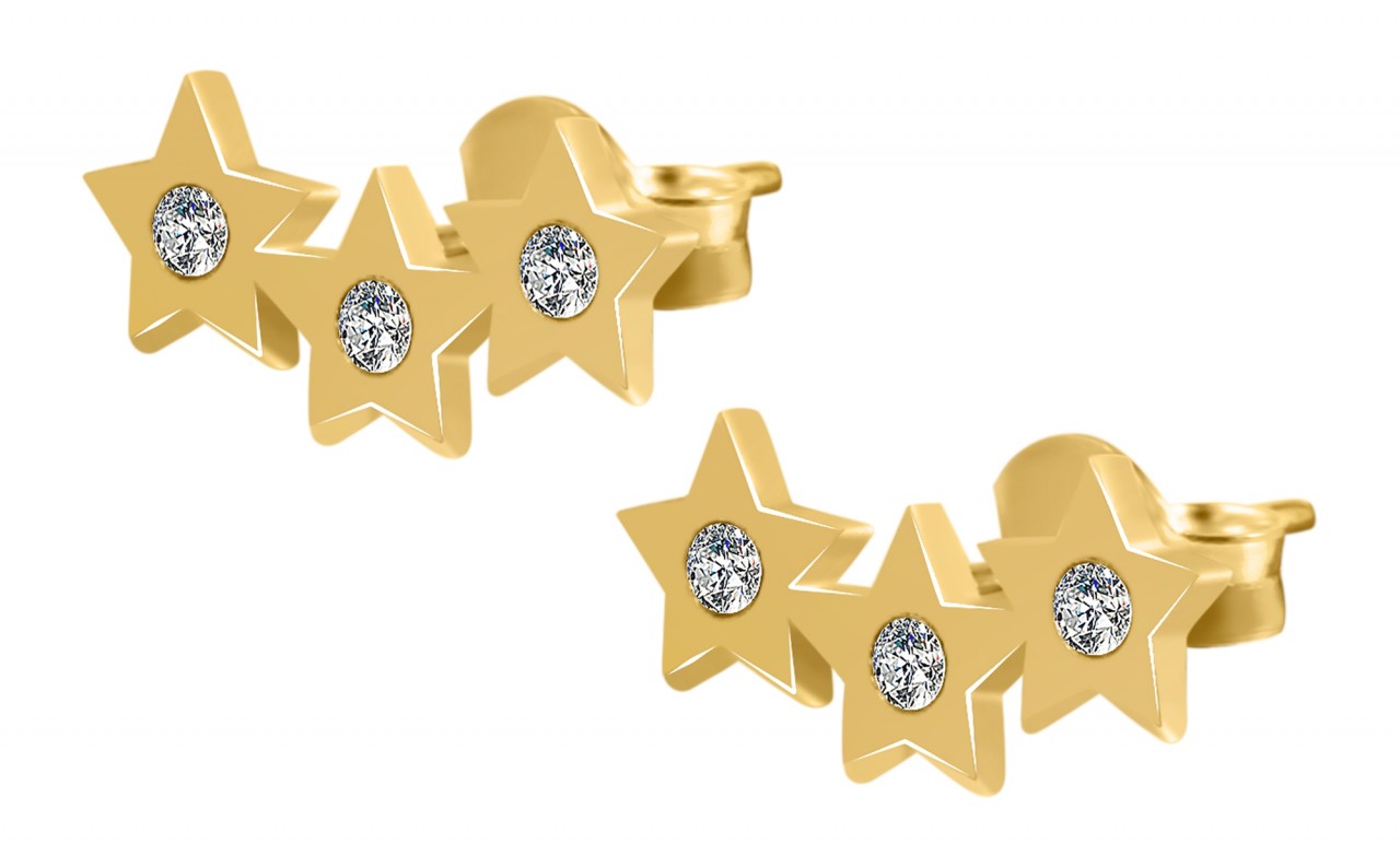 Os elegantes brincos são fabricados em ouro 333 (8 quilates) ou 375 (9 quilates). Os brincos são em ouro amarelo e estão decorados com 3 zircónias brilhantes. A guarnição branca cria um contraste atrativo. Os brincos de ouro são fixados com um prático parafuso de asa, também em ouro verdadeiro, fácil de utilizar e que garante uma fixação segura no orifício da orelha. Em suma, estes brincos são acessórios bonitos e o presente perfeito para a mulher moderna de hoje. As dimensões resultam de um comprimento de 15 mm, uma largura de 5 mm e uma espessura de material de 1 mm.