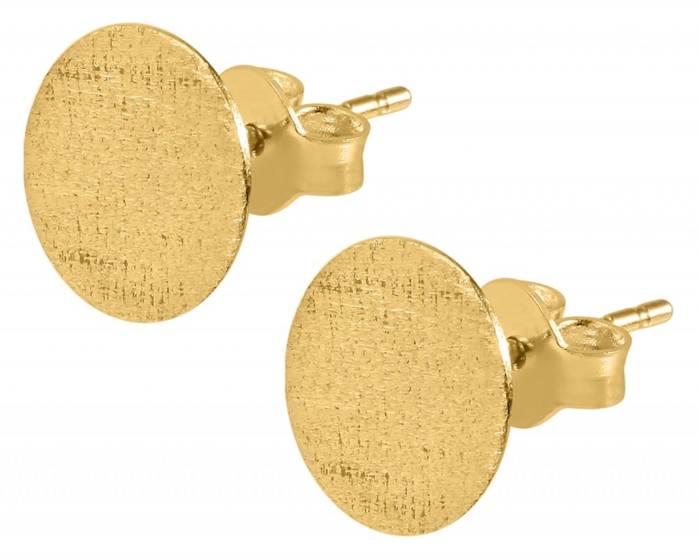 Os elegantes brincos redondos são feitos de ouro 333 (8 quilates) ou 375 (9 quilates). Os brincos são em ouro amarelo. Os brincos em ouro são fixados com um prático parafuso de asa, também em ouro verdadeiro, fácil de utilizar e que garante uma fixação segura no orifício da orelha. Em suma, estes brincos são acessórios bonitos e o presente perfeito para a mulher moderna de hoje. Os brincos têm um diâmetro de 10 mm e uma espessura de material de 1 mm.