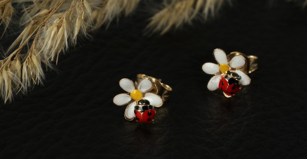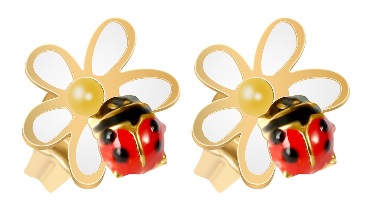 Estes brincos encantadores vão fazer brilhar os olhos das crianças! São feitos de ouro amarelo 333 precioso e decorados com esmalte colorido, o que dá à peça de joalharia um toque extra de cor. Com um design lúdico e um acabamento de alta qualidade, estes brincos são suficientemente robustos para resistir às aventuras quotidianas das crianças. A joaninha detalhada e a flor delicada são uma homenagem às maravilhas da natureza e inspirarão a imaginação dos mais pequenos.