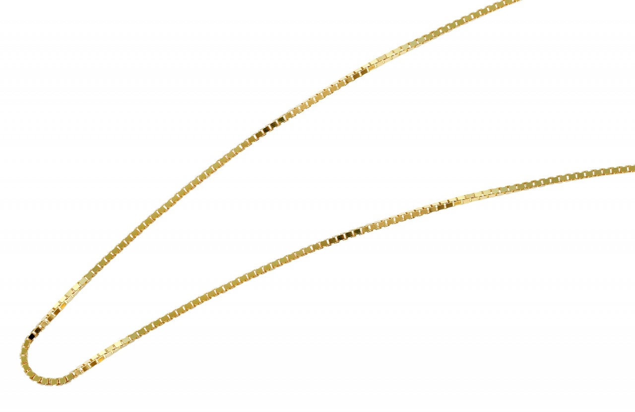 Este fino colar da marca Akzent é fabricado em ouro amarelo 333 da mais alta qualidade num padrão veneziano e está disponível nos comprimentos de 40, 42, 45 e 50 cm. O seu acabamento delicado, a largura e a espessura da corrente de 1 mm tornam-no ideal para combinar com pendentes, mas também chama a atenção sem um pendente de joias graças ao seu acabamento especial e ao seu acabamento brilhante. Os elos da corrente veneziana são quadrados e fundem-se elegantemente uns nos outros. O resultado é um aspeto especial e elegante, muito confortável de usar. Esta peça de joalharia é um colar com uma forma bonita e um valor de reconhecimento que pode ser usado lindamente com ou sem um pendente decorativo.