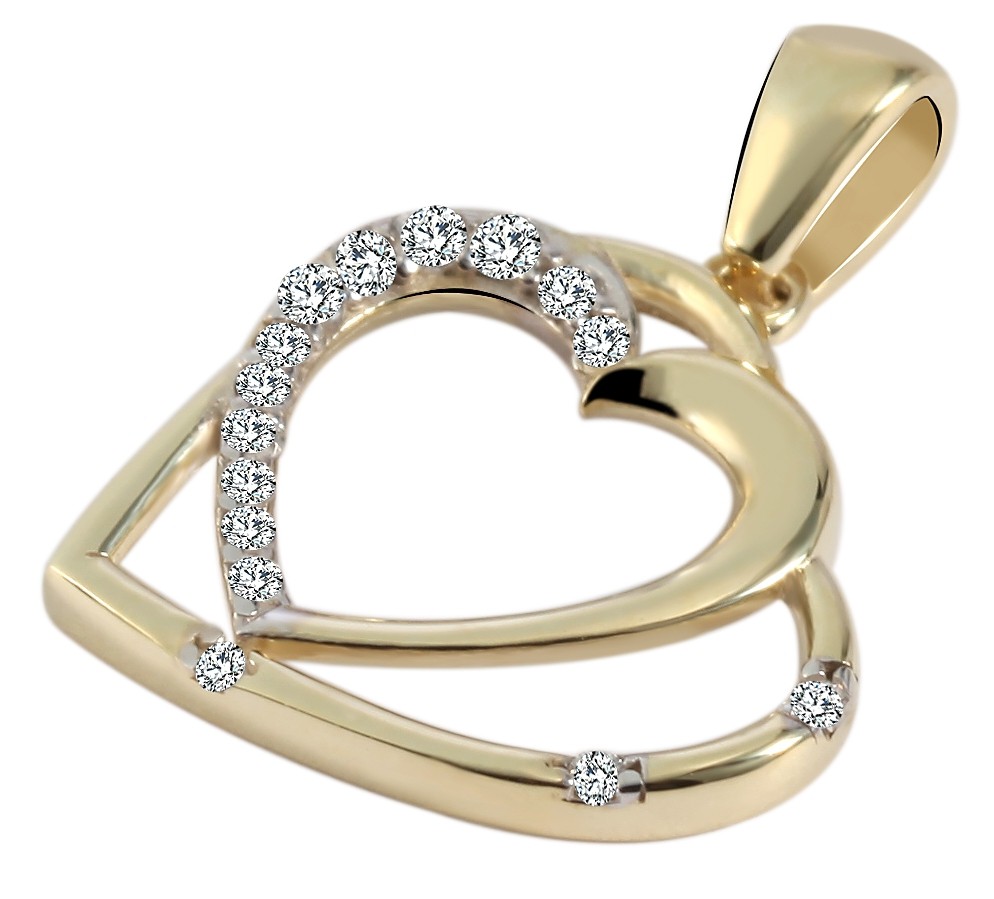 Joalharia Ouro 8k -Pingente em Ouro , Coração com Zircónias