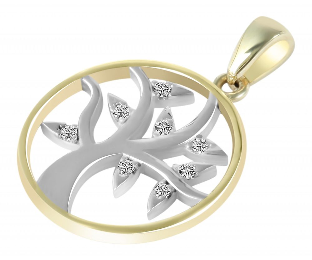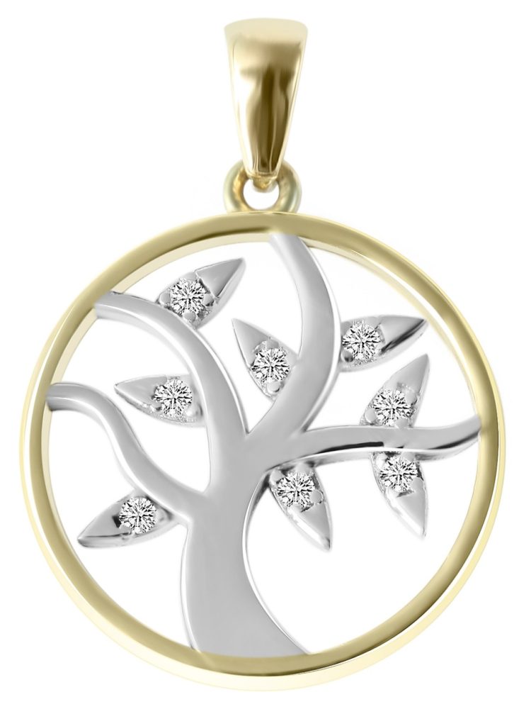 O pendente redondo com uma árvore da vida está disponível em 333 (8 quilates) e 375 (9 quilates) em ouro branco ou em ouro amarelo. O pendente é também adornado com 8 zircónias brilhantes. O engaste branco cria um contraste atrativo. O acabamento da superfície é polido e confere-lhe um brilho adicional. Graças ao ilhó oval, o pendente pode ser ligado a uma grande variedade de correntes. O colar não está incluído no volume de fornecimento. O pendente de joalharia é intemporal e pode ser usado em qualquer ocasião. O pendente também é ideal como presente. Por exemplo, para uma comunhão, confirmação, aniversário, aniversário de casamento, Dia da Mãe ou Natal. O pendente tem um diâmetro de 18 mm e uma espessura de material de 2 mm.