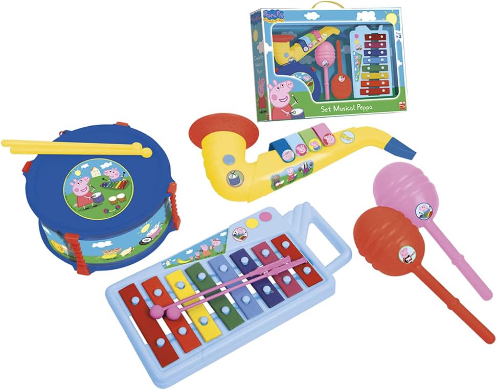 - Conjunto musical com: xilofone de 8 notas com baquetas, tambor com baquetas, saxofone e maracas