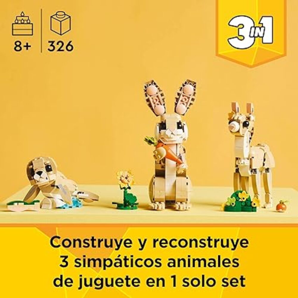 - 3 animais de brincar reconstruíveis para crianças em 1 caixa: O conjunto LEGO Creator bonito coelho para meninas e meninos a partir dos 8 anos permite construir e reconstruir 3 figuras de animais diferentes com os mesmos tijolos