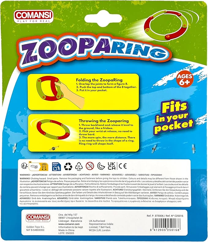 - O ZoopaRing é um brinquedo revolucionário de lançamento que combina o design aerodinâmico com a surpresa do movimento: a sua estrutura desdobra durante o voo para alcançar trajetórias impressionantes e um retorno suave e preciso.