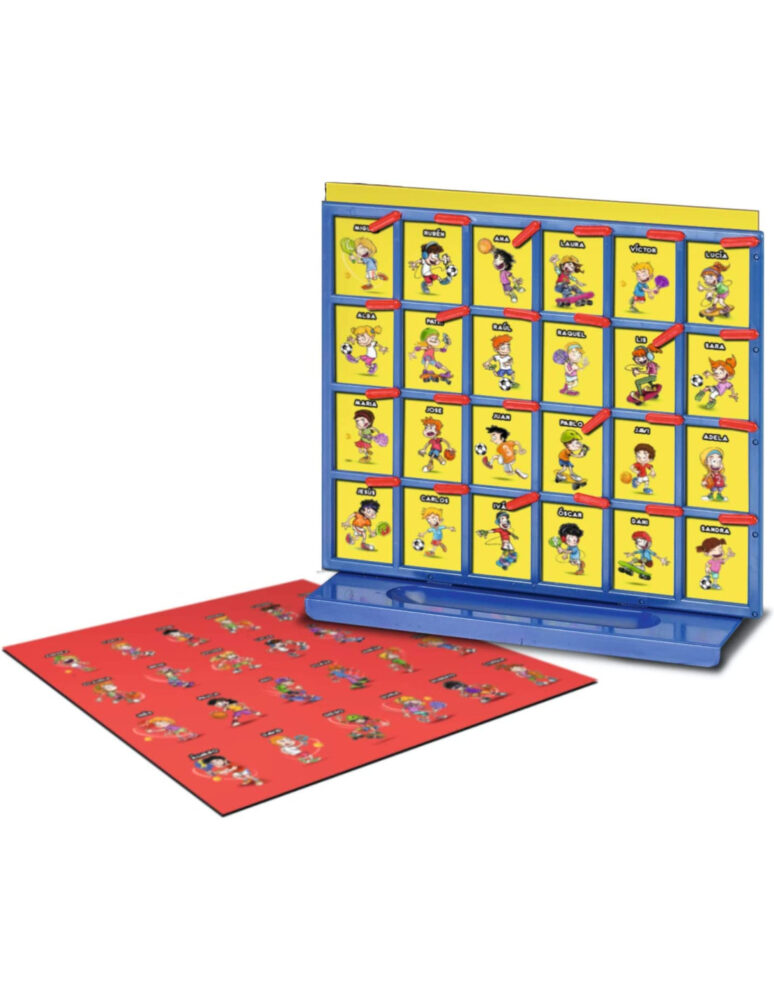 Descubra o personagem que seu parceiro esconde: Escolha um dos personagens da imagem e responda com um “SIM” ou um “NÃO” as perguntas do seu oponente sobre o personagem e vice-versa. Descarte caracteres baixando o pivô vermelho na parte superior da caixa. O vencedor será o jogador que primeiro adivinha qual personagem é seu oponente.
