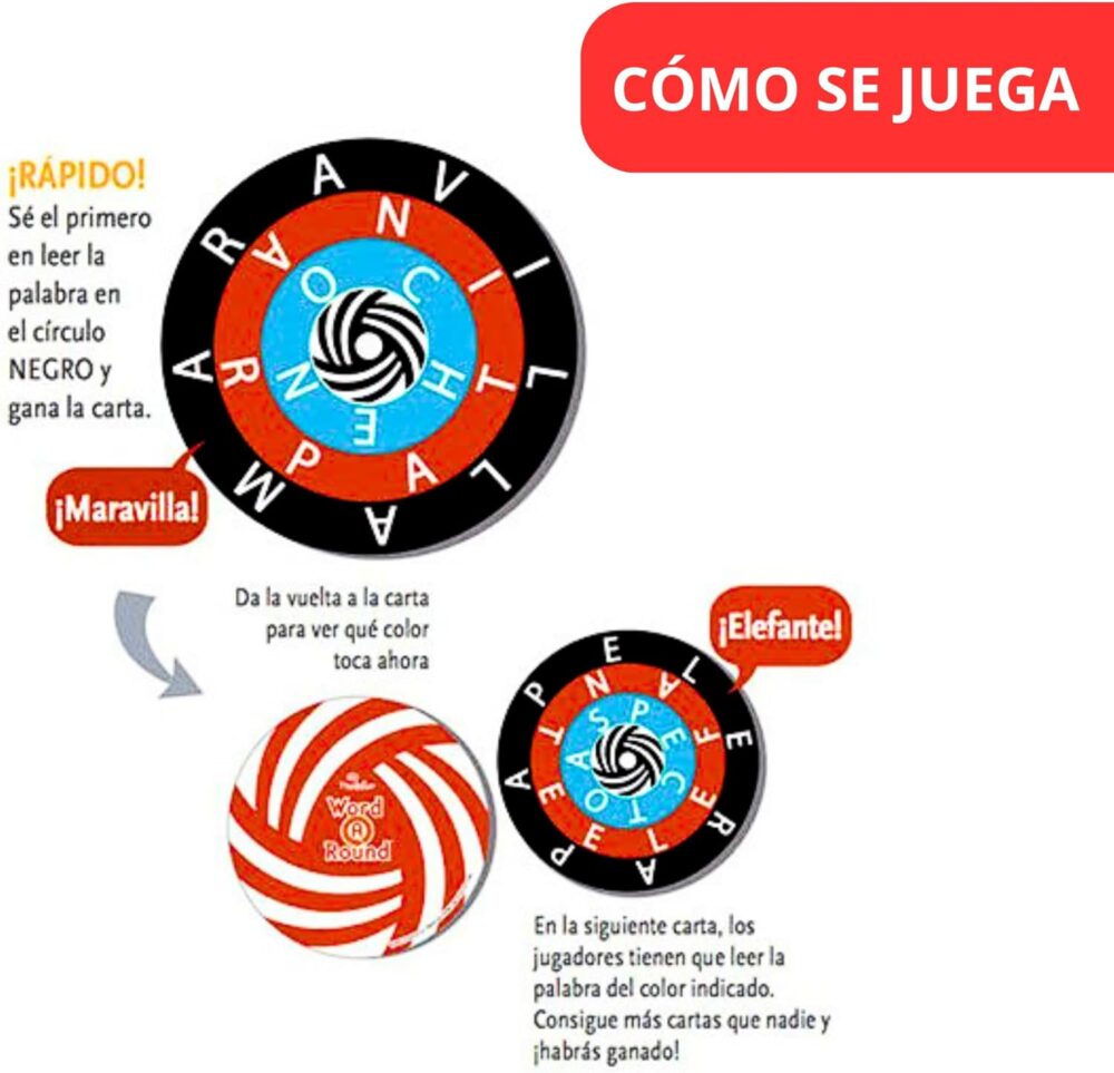 • Conjunto de cartas para aprender palavras: Os jogadores devem reconhecer e ler palavras em espanhol dentro de um círculo, tornando-o um excelente jogo de cartas para crianças e uma opção original dentro dos jogos de mesa crianças 10 anos.
