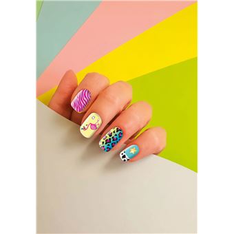 - O conjunto contém 24 unhas de diferentes tamanhos e formatos, com tema animal.