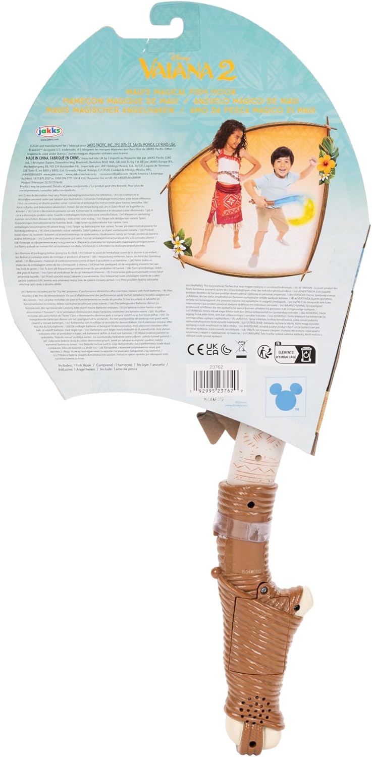 - Este impressionante anzol de 50 centímetros de comprimento possui luzes e sons activados por movimento e detalhes esculpidos, reproduzindo fielmente a arma icónica do Maui.