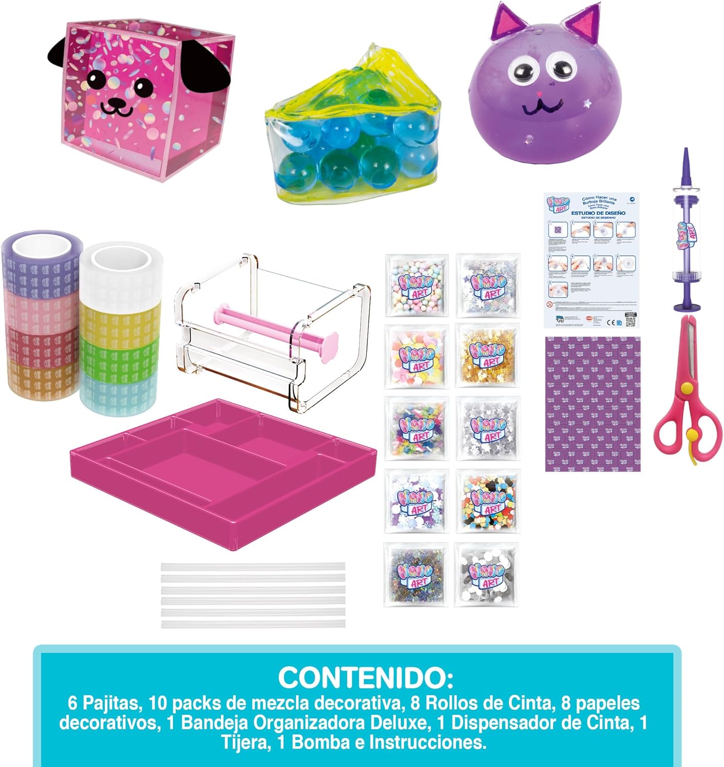 - Este completo kit Nano Design Studio Deluxe inclui uma grande variedade de lantejoulas, purpurina, estrelas e bolinhas que permitem criar bolhas de fita cativantes numa variedade de cores vibrantes e tamanhos adaptados à sua visão criativa. Desbloqueie infinitas possibilidades e dê vida às suas ideias artísticas com este estúdio de design premium.
