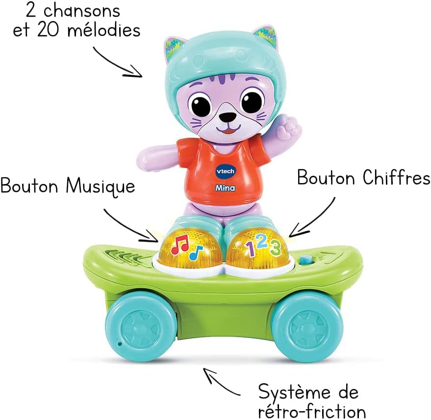 - Idade: De 12 a 36 meses, um adorável gato interativo que faz skate!