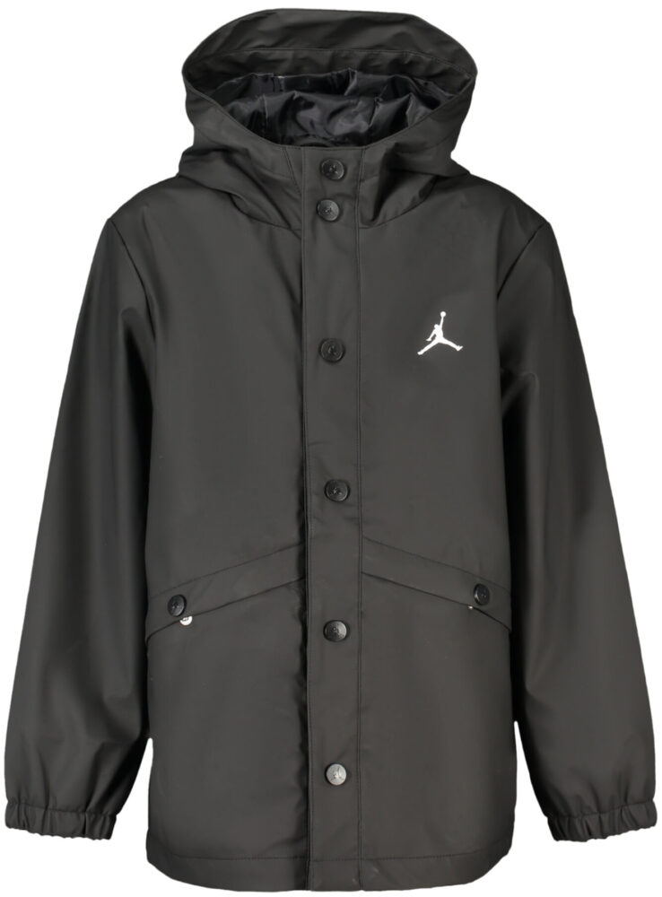 Jaqueta de manga comprida com capuz, 2 bolsos externos, botões, estampa, logo