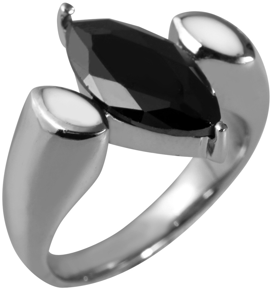 Just® Anel Lako Prateado com Pedra Preta em Aço Inoxidável - 50