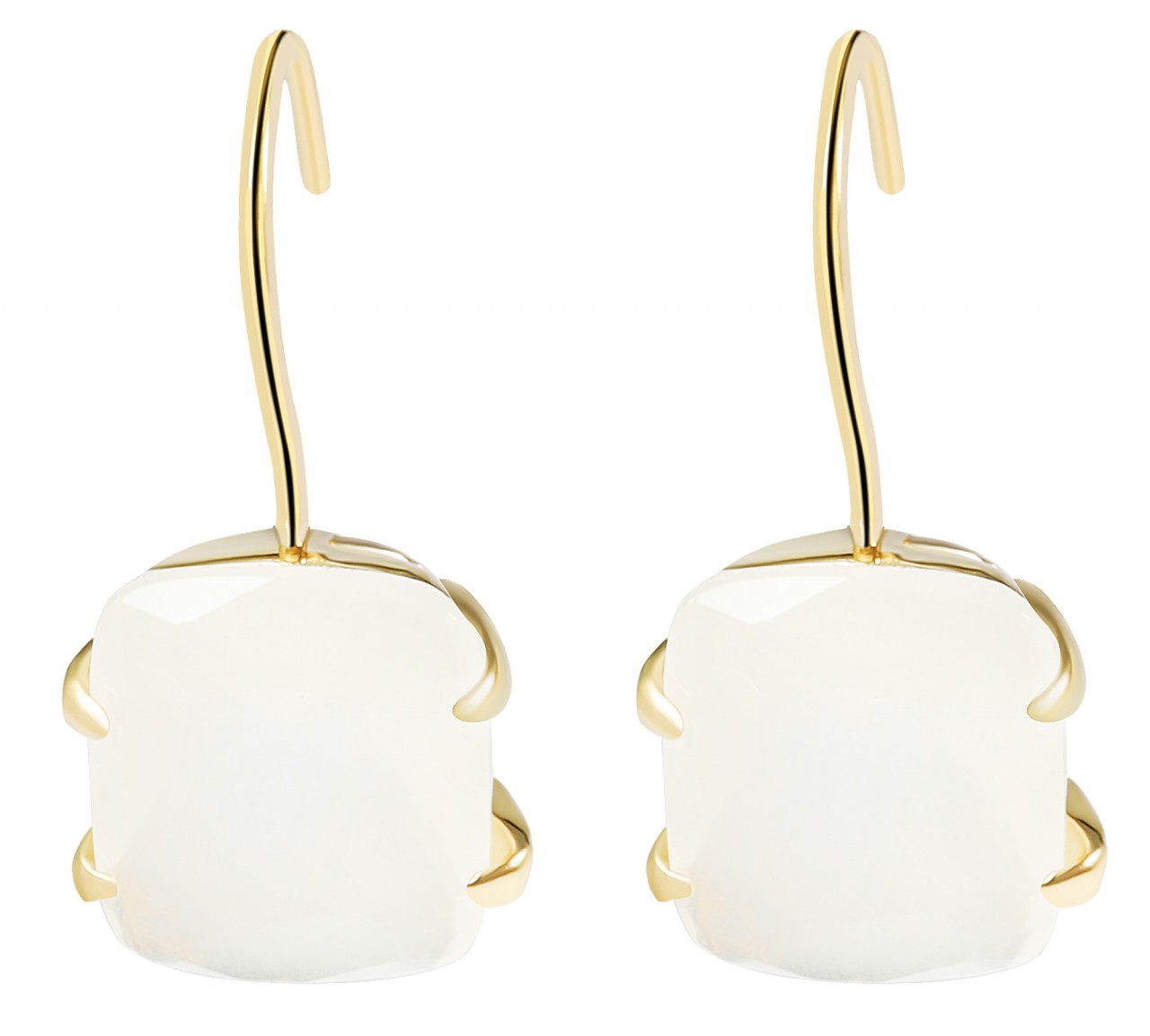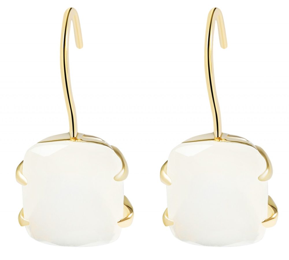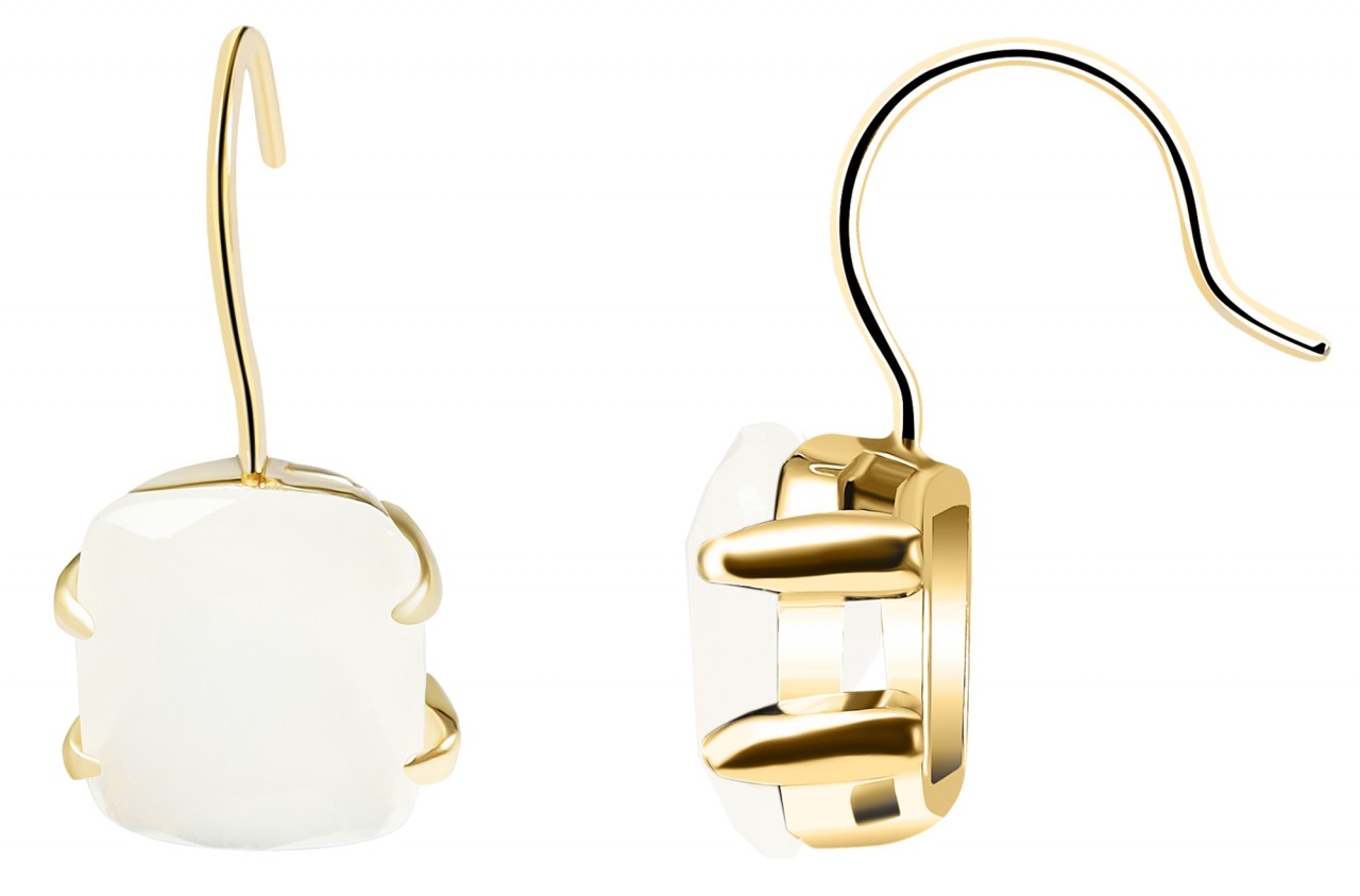 Brincos em aço inoxidável. Revestimento IP Gold. A cor é dourada. A textura é em aço inoxidável brilhante. O item tem as seguintes dimensões: largura 11 mm e altura 1,1 cm.