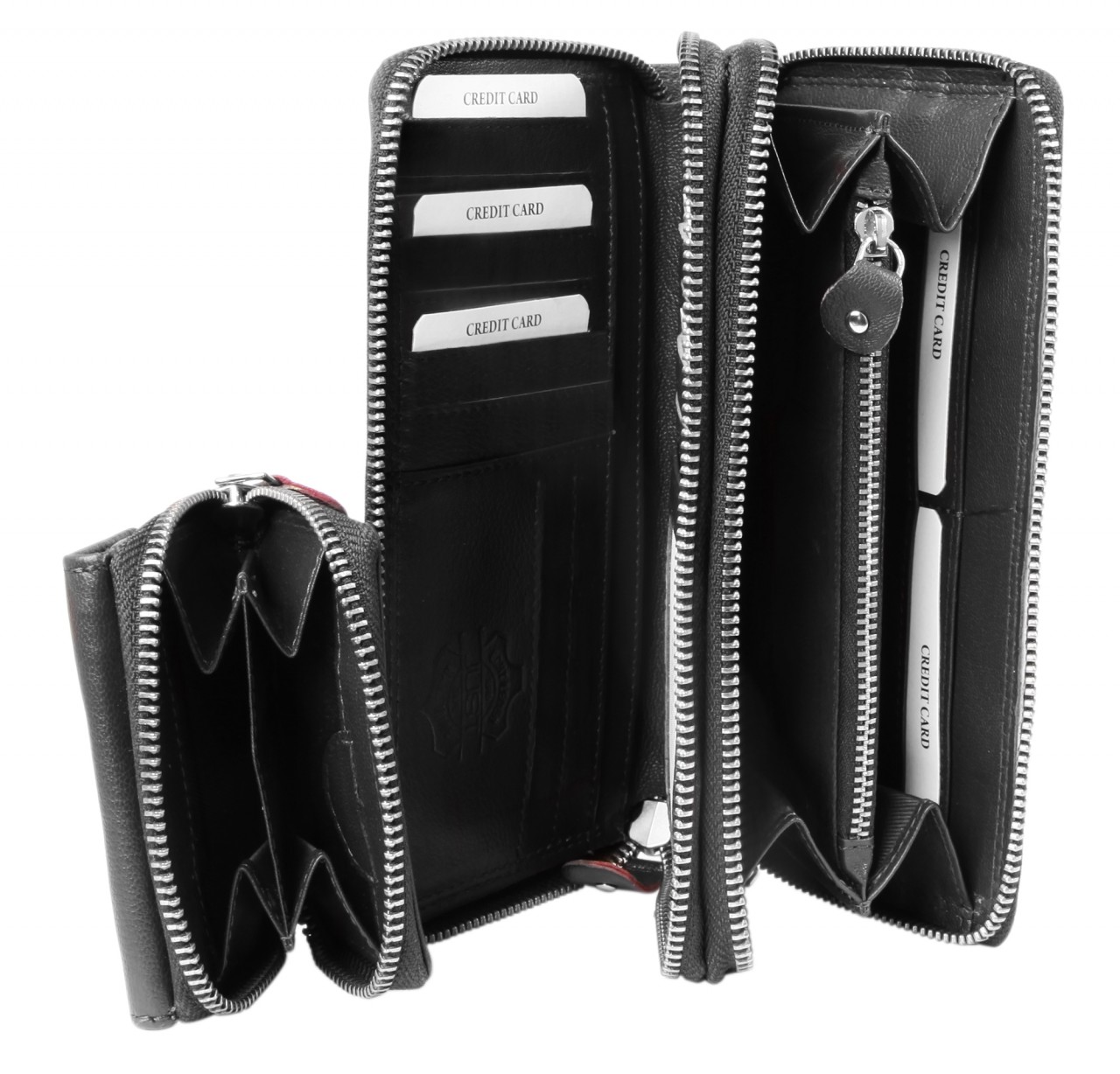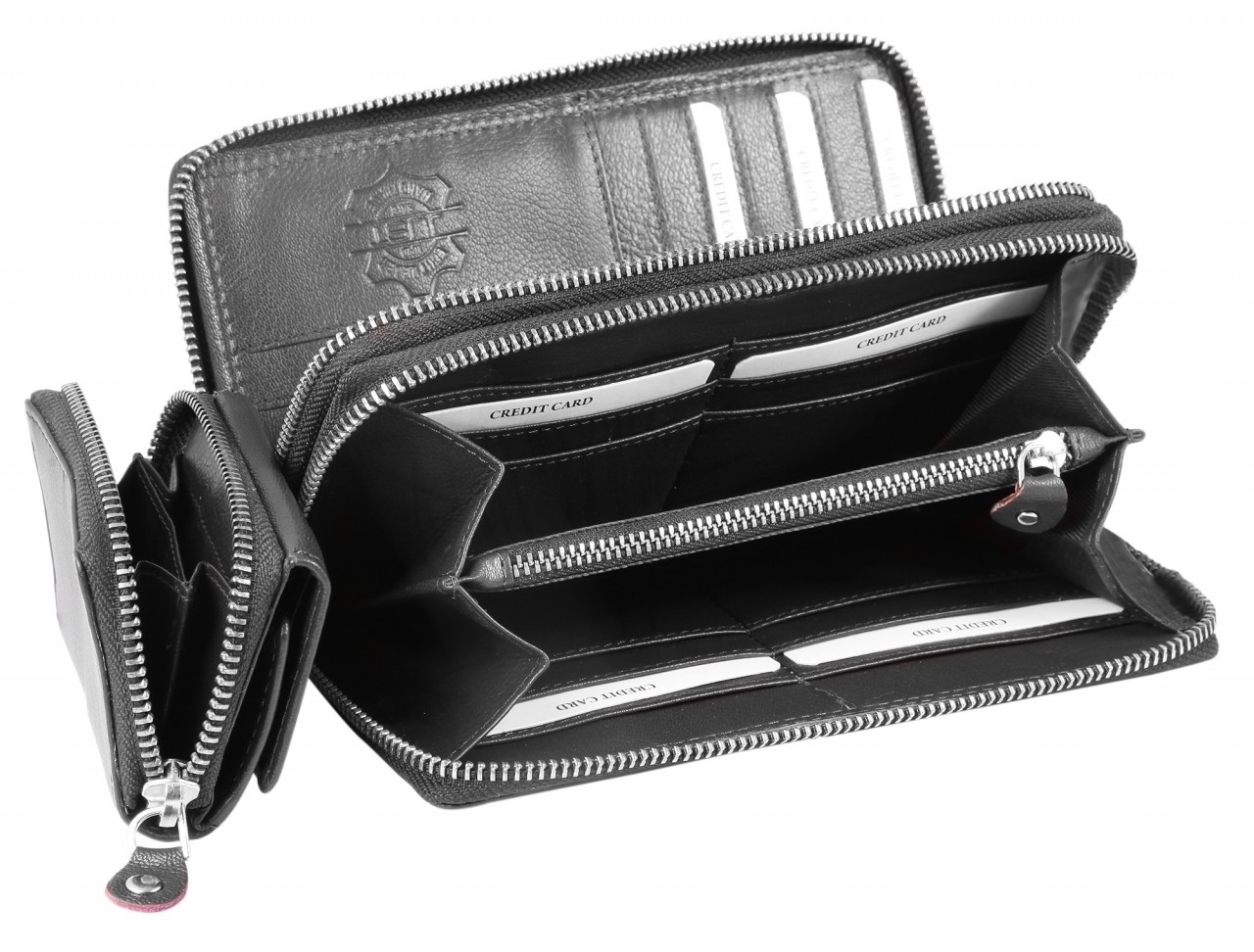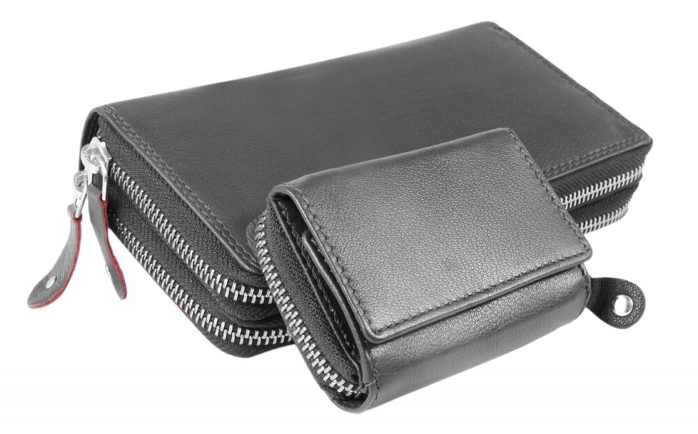 O conjunto da marca Just, composto por duas carteiras, é confecionado em couro genuíno de cabra. O acabamento superficial de ambas as bolsas é liso e possui granulação sutil. O conjunto inclui uma mini carteira 6,5 x 10 x 3 cm e uma versão maior 10 x 19,5 x 3,5 cm. A carteira pequena cabe confortavelmente nos bolsos das calças e do casaco, e está equipada com dois compartimentos para notas e um compartimento para moedas. A contraparte correspondente oferece muito espaço de armazenamento para guardar todos os documentos importantes de forma clara e segura. Inclui dois compartimentos para notas, um compartimento para moedas, 26 compartimentos para cartões, seis bolsos deslizantes e um bolso transparente para identificação. Graças à proteção RFID integrada, ambas as bolsas estão protegidas contra ataques de fraude com cartões com chip. O conjunto forma um ótimo par que é ideal como presente.