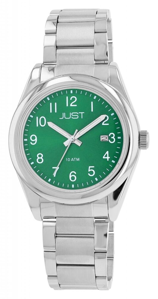 Simples, moderno e com aquele toque especial – esse é o “Mailo” da marca JUST! A caixa redonda de aço inoxidável (41 mm de diâmetro, 13 mm de altura) cria um visual simples, que é perfeitamente complementado pelo mostrador transparente com algarismos arábicos e ponteiros luminescentes. O prático mostrador de data completa o mostrador perfeitamente. A pulseira de aço inoxidável (20 mm na haste, 23 cm de comprimento total) pode ser perfeitamente ajustada ao seu pulso simplesmente removendo os elos individuais. O movimento de alta qualidade e a resistência à água de 10 ATM fazem do relógio um companheiro confiável para o dia a dia. Seja clássico em prata, atemporal em verde-prateado ou azul-prateado ou colorido em turquesa-prateado, vermelho-prateado ou amarelo-prateado – com o “Mailo” da JUST você usa exatamente o relógio que combina com você.