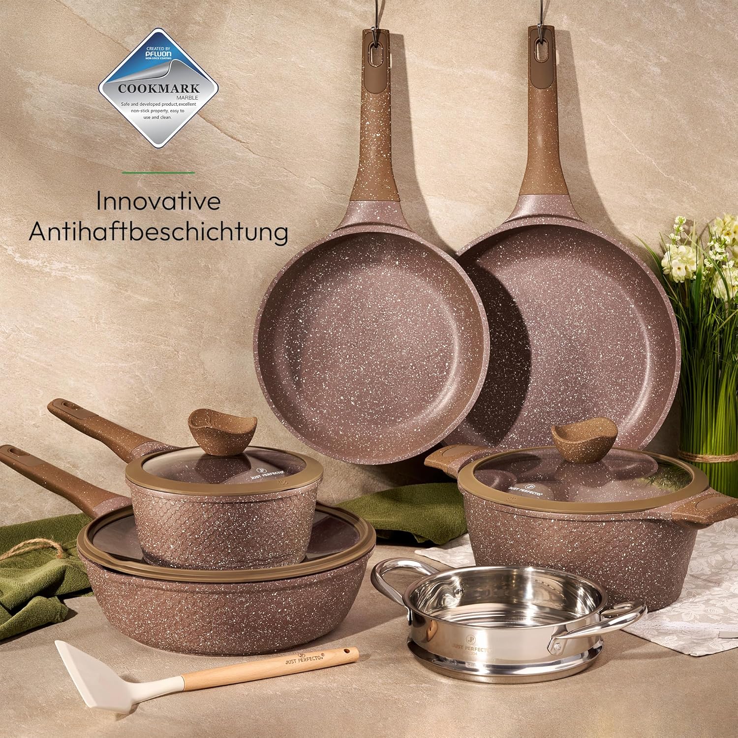 The Just Perfecto JL-26 elevates kitchen performance with its granite non-stick technology, stylish brown marble finish, and induction-ready base. Built for modern European homes, it combines premium craftsmanship and visual appeal to enhance every cooking experience. Distributed by MSY Invest, this cookware set promises strong market turnover, consumer satisfaction, and sustained retail profitability.