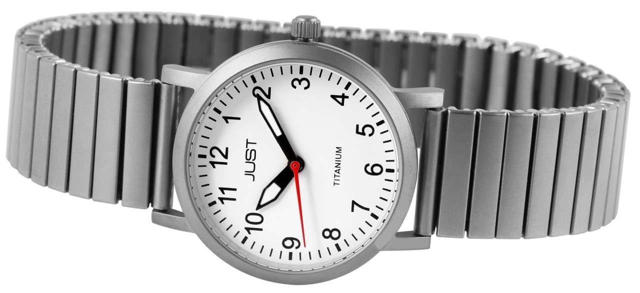 Relógio feminino da marca Just com bracelete confecionada em titânio.