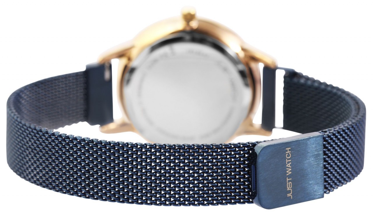 O relógio analógico feminino da Just Watch possui um Miyota GL20. O comprimento total é de 22 cm. A caixa de metal com vidro mineral tem dimensão de 33 mm e altura de caixa de 6 mm. A tampa da caixa é feita de aço inoxidável. O relógio é testado com pressão de 3 ATM. Caixa original