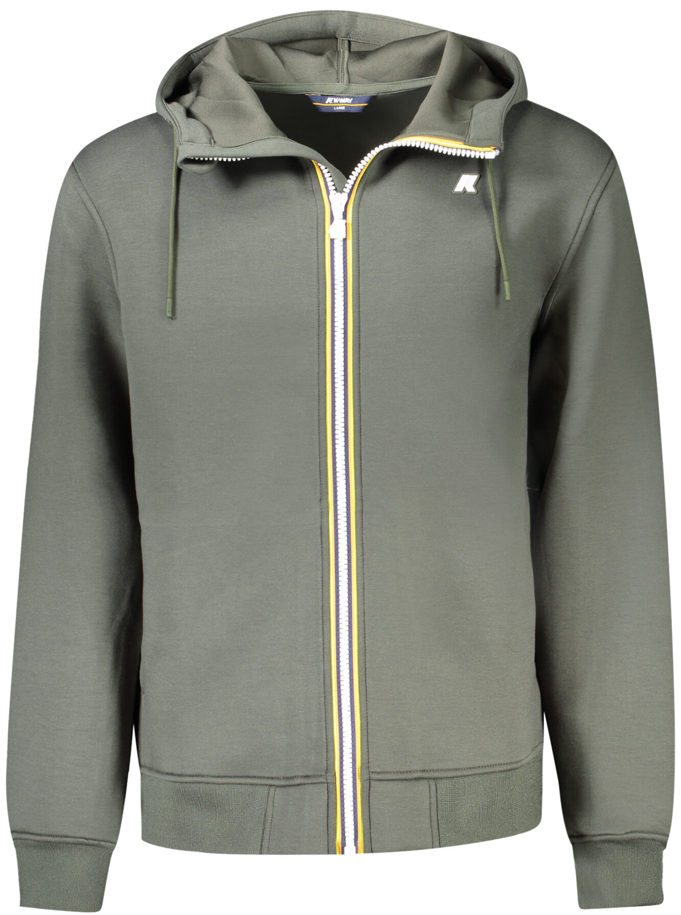 Jaqueta de mangas compridas com capuz ajustável, confeccionada em tecido técnico elástico que combina poliéster, viscose e elastano, oferecendo conforto, resistência e liberdade de movimento.