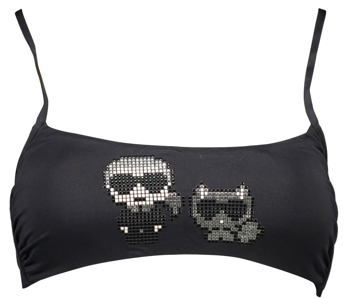 Maiô com faixa, interior forrado, enchimento removível, gravata no pescoço, fecho de pressão, detalhes contrastantes, logotipo