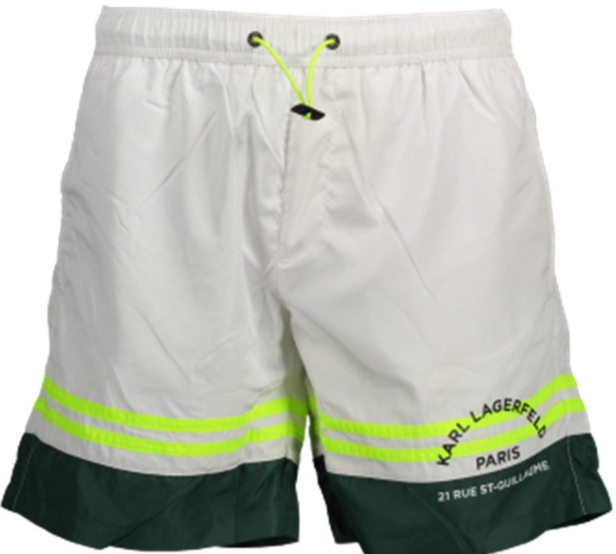 Calção Praia com 2 bolsos frontais, 1 bolso traseiro, cueca interior, cordão e logo
