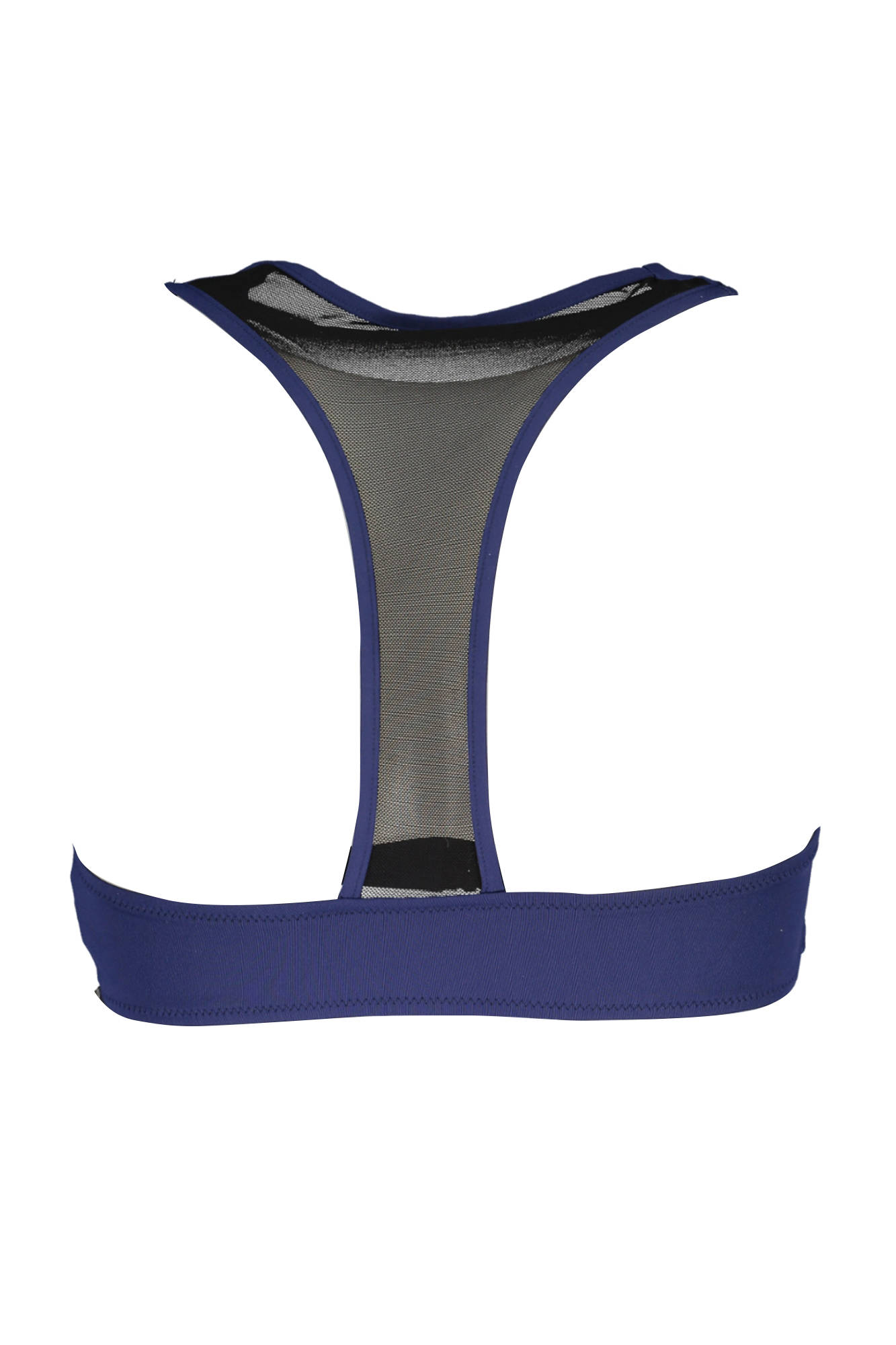 Parte de cima bikini em triângulo, interior forrado, enchimento amovível e logo.