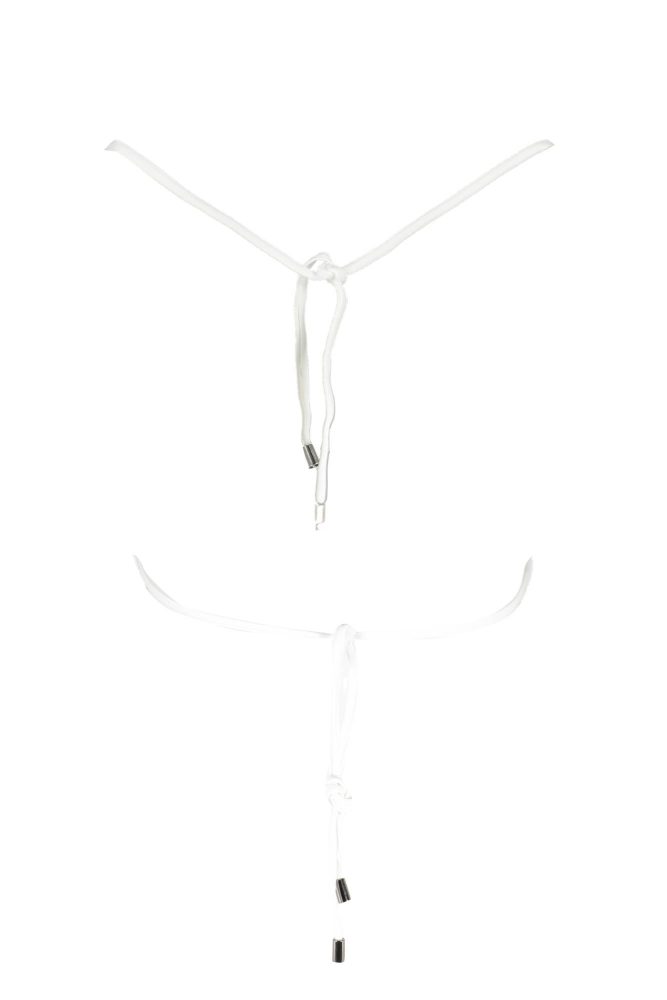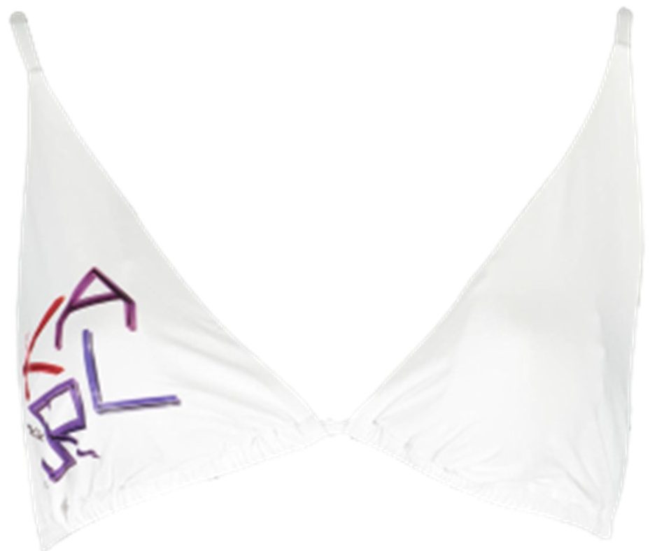 Parte de cima bikini em triângulo, interior forrado, enchimento amovível e logo.