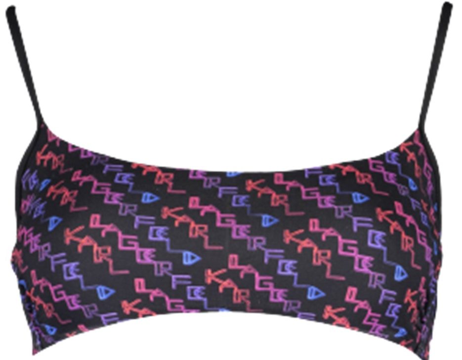 Parte de cima bikini em triângulo, interior forrado, enchimento amovível e logo.