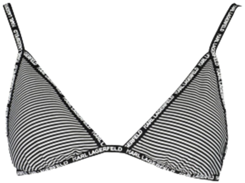 Parte de cima bikini em triângulo, interior forrado, enchimento amovível e logo.