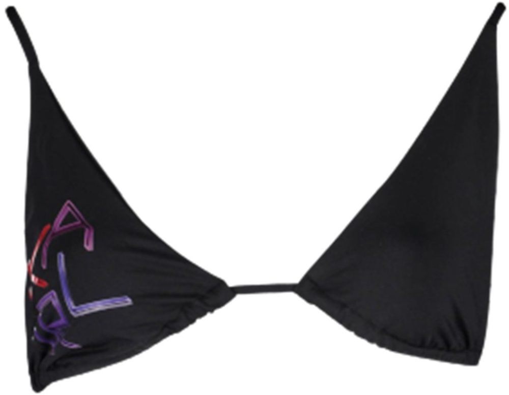 Parte de cima bikini em triângulo, interior forrado, enchimento amovível e logo.