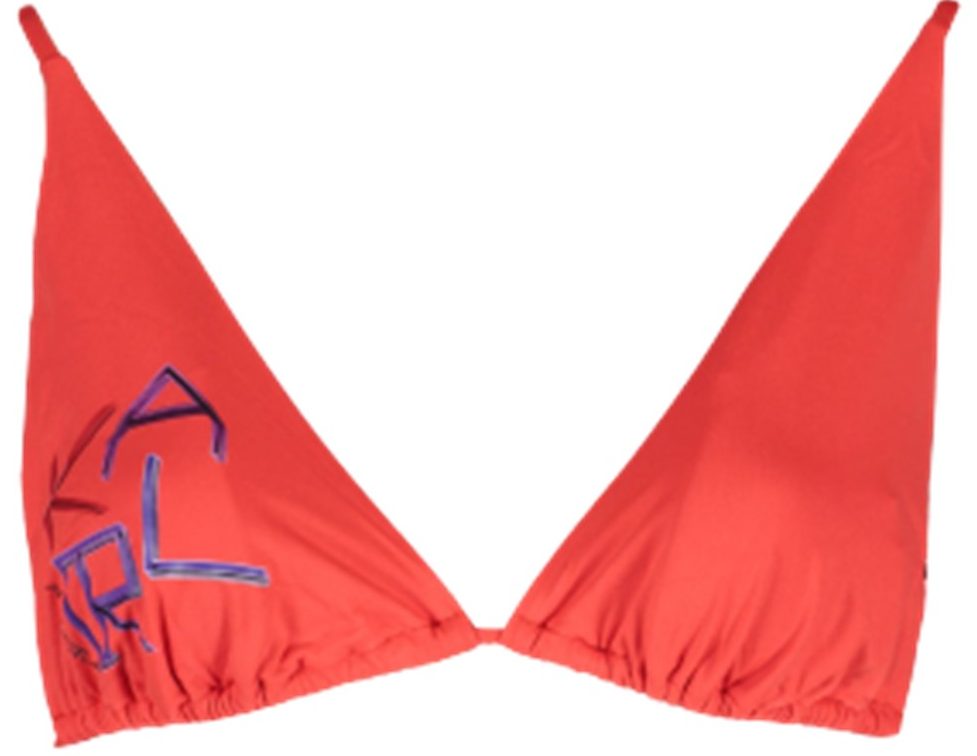 Parte de cima bikini em triângulo, interior forrado, enchimento amovível e logo.