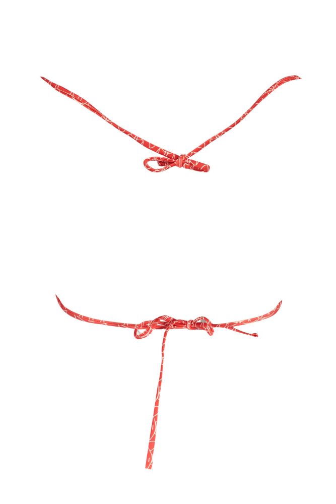 Parte de cima bikini em triângulo, interior forrado, enchimento amovível e logo.