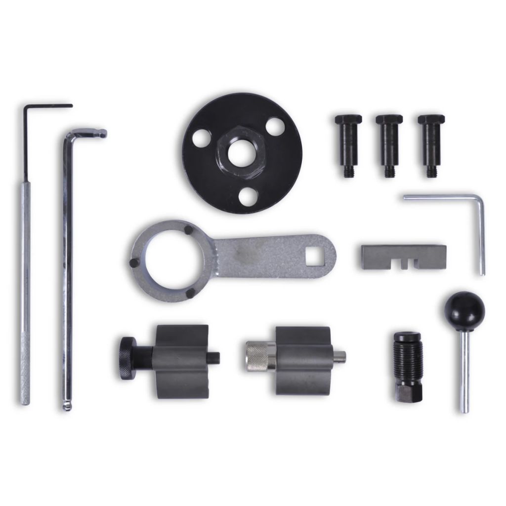Este conjunto de ferramentas de 10 peças de sincronismo é uma ferramenta profissional para uso comercial ou bricolage. Elas são necessárias para bloquearem a árvore de cames e a cambota, remoção e montagem de bombas de injeção de combustível e bombas de água, ajuste da correia de distribuição e fixação do eixo de equilíbrio.