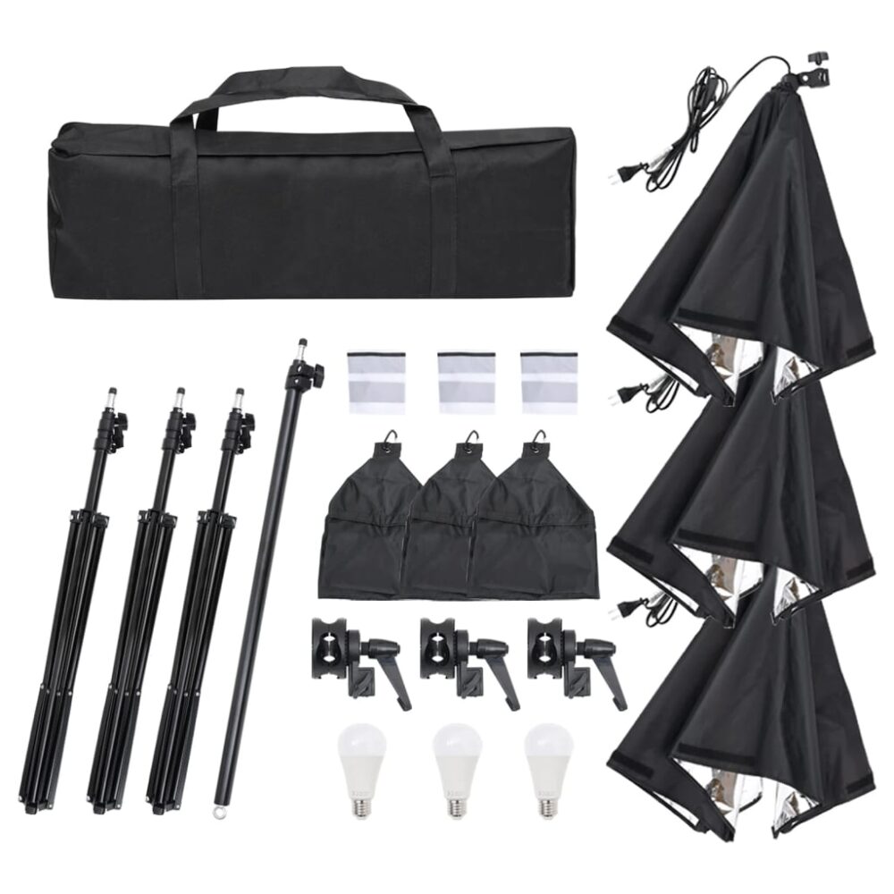 Este kit de estúdio fotográfico é uma escolha ideal para fotografar no estúdio ou no local. Excelente desempenho de iluminação: as softboxes de iluminação proporcionam uma luz suave, prevenindo assim sombras escuras. Graças à sua fonte de luz fria, não existe produção de calor no estúdio. Este conjunto consiste em iluminação contínua e não um conjunto de flashes.Sistema de fundo flexível: o sistema de fundo flexível é fácil de configurar e pode ser combinado com fundos que não têm emendas e são de cor fixa. Cada suporte possui uma rosca padrão de 1/4 de polegada, sendo adequado para câmaras analógicas e digitais.Conjunto de refletores úteis: cada refletor é fornecido com painéis de superfície diferentes. Pode trabalhar com diferentes combinações de luzes mais quentes ou mais frias, tanto para fotografia interior como exterior.Fácil de arrumar: graças ao saco de transporte incluído, o kit é fácil de arrumar e transportar.