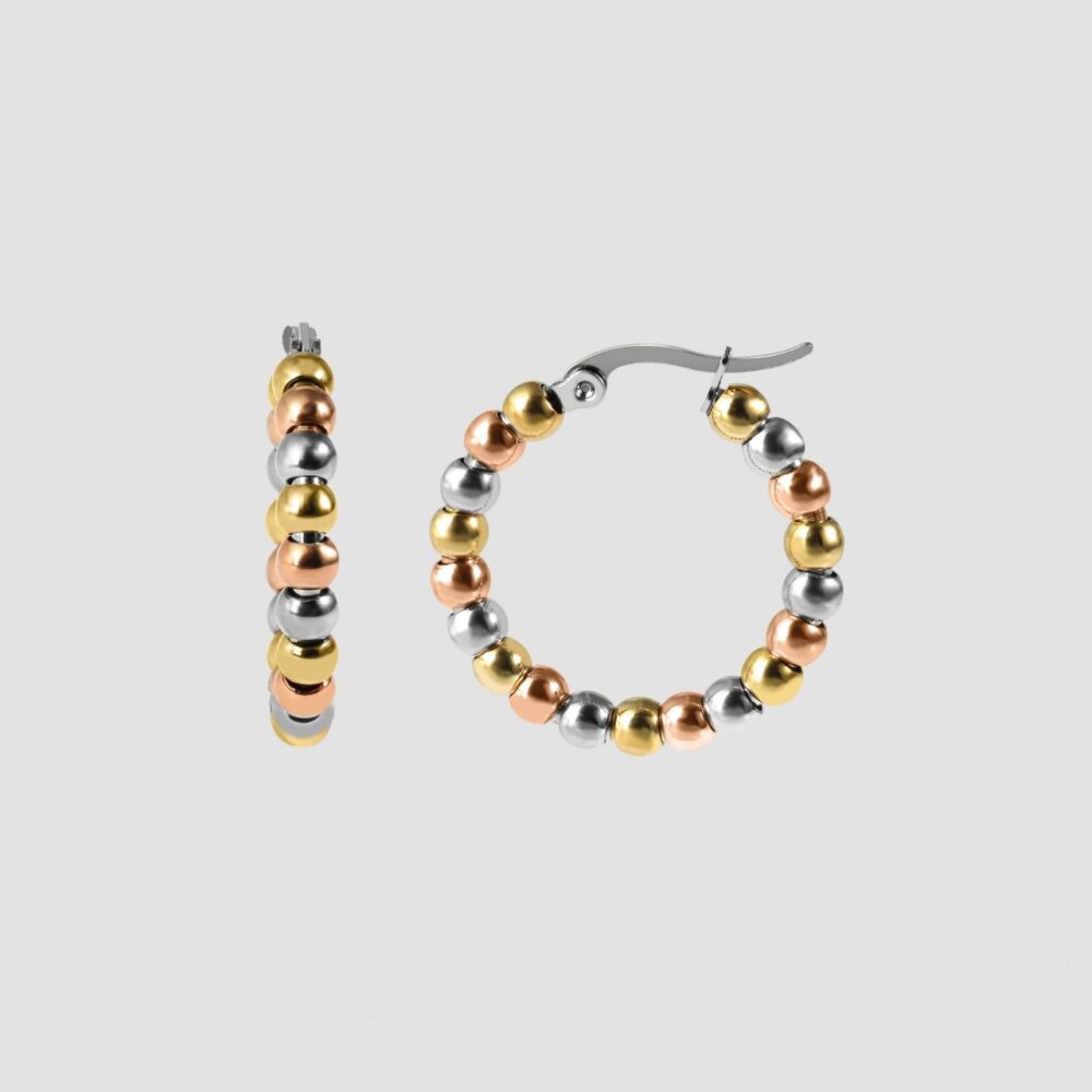 Como pequenas pérolas, as pequenas bolas são unidas para formar uma argola com um formato elegante. Elas se fecham com um fecho prático de pressão para evitar que caiam.