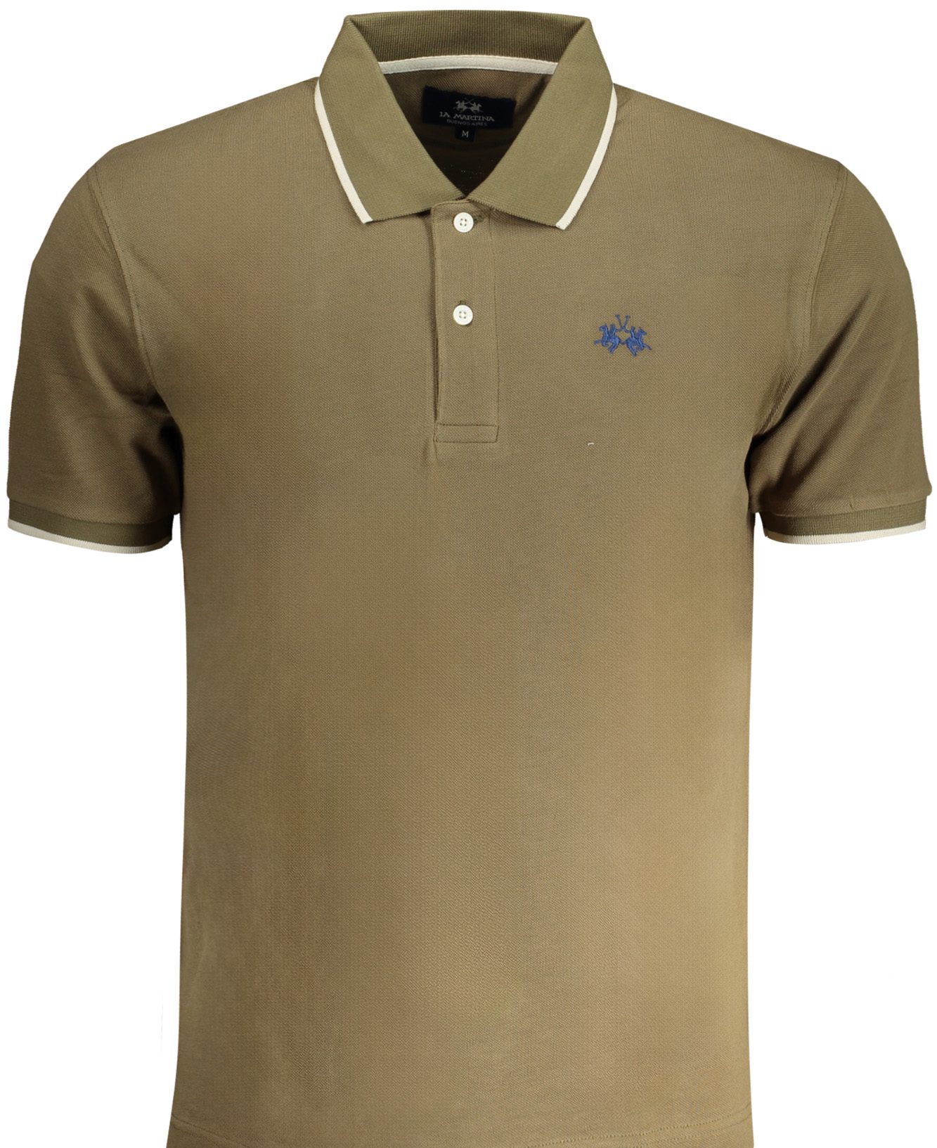Camisa polo de manga curta, ajuste regular, 2 botões, detalhes de contraste, logótipo bordado.