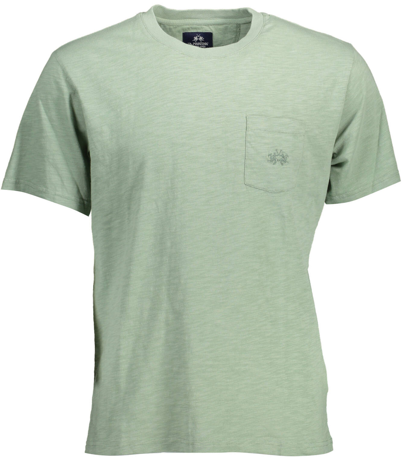 Esta t-shirt de manga curta, com ajuste regular e gola redonda, destaca-se pelo bolso frontal e bordado com logótipo — perfeita para um look casual e cuidado.