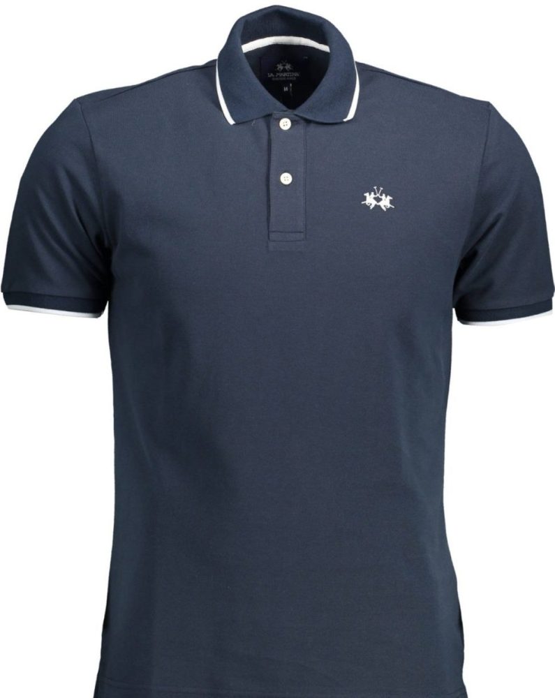 Polo de manga curta com 2 botões, corte regular, detalhes contrastantes e logótipo bordado.