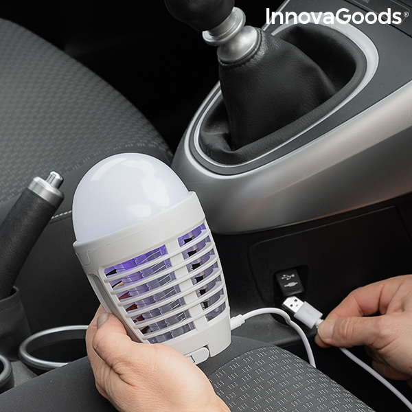 Uma original e versátil lâmpada antimosquitos com luz LED, muito útil devido à dupla função: antimosquitos e lâmpada LED. Cada função pode ser utilizada em separado ou simultaneamente. Muito eficaz para iluminar e afastar facilmente os incómodos insetos. O design portátil recarregável é perfeito para a utilização no exterior (passeios, campismo, montanha, jardins, terraços, etc.), ainda que também possa ser utilizada no interior.