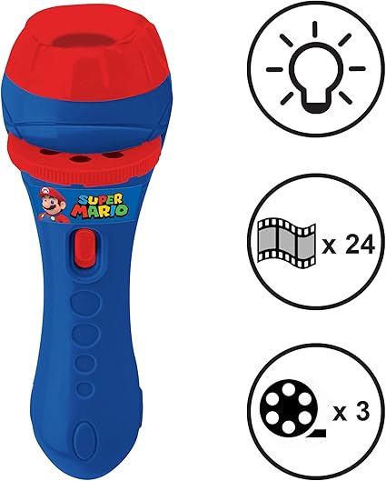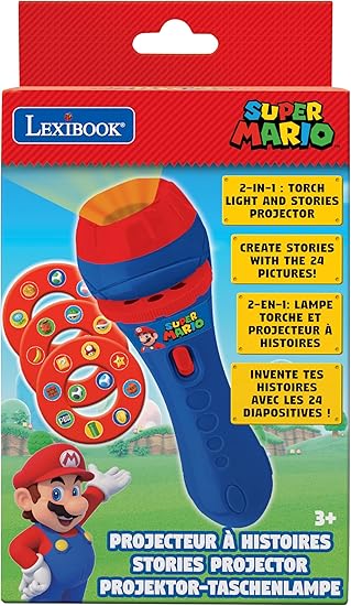 - Projete as suas imagens favoritas do Super Mario com os 3 discos (24 imagens) incluídos.