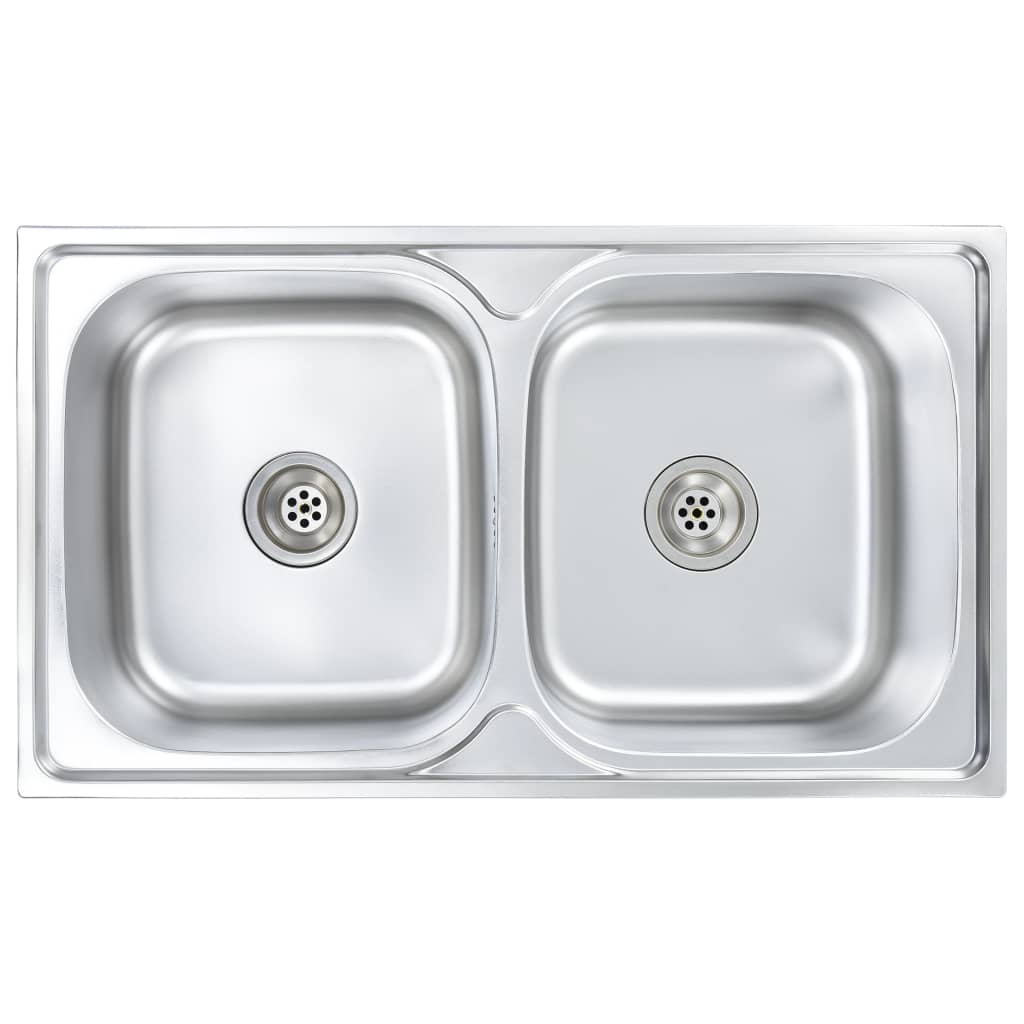 Feito em aço inoxidável de qualidade, este lava-louças de cozinha é resistente a riscos e impactos e é altamente durável. Também repele a sujidade e é resistente a manchas, sendo fácil de limpar. Este lava-louças de cozinha economiza espaço e deixa mais espaço livre no balcão. As cubas extra fundas possuem um amplo espaço para panelas e pratos grandes e por serem duplas cria uma área de utilização totalmente separada. A entrega também inclui o ralo e o sifão.